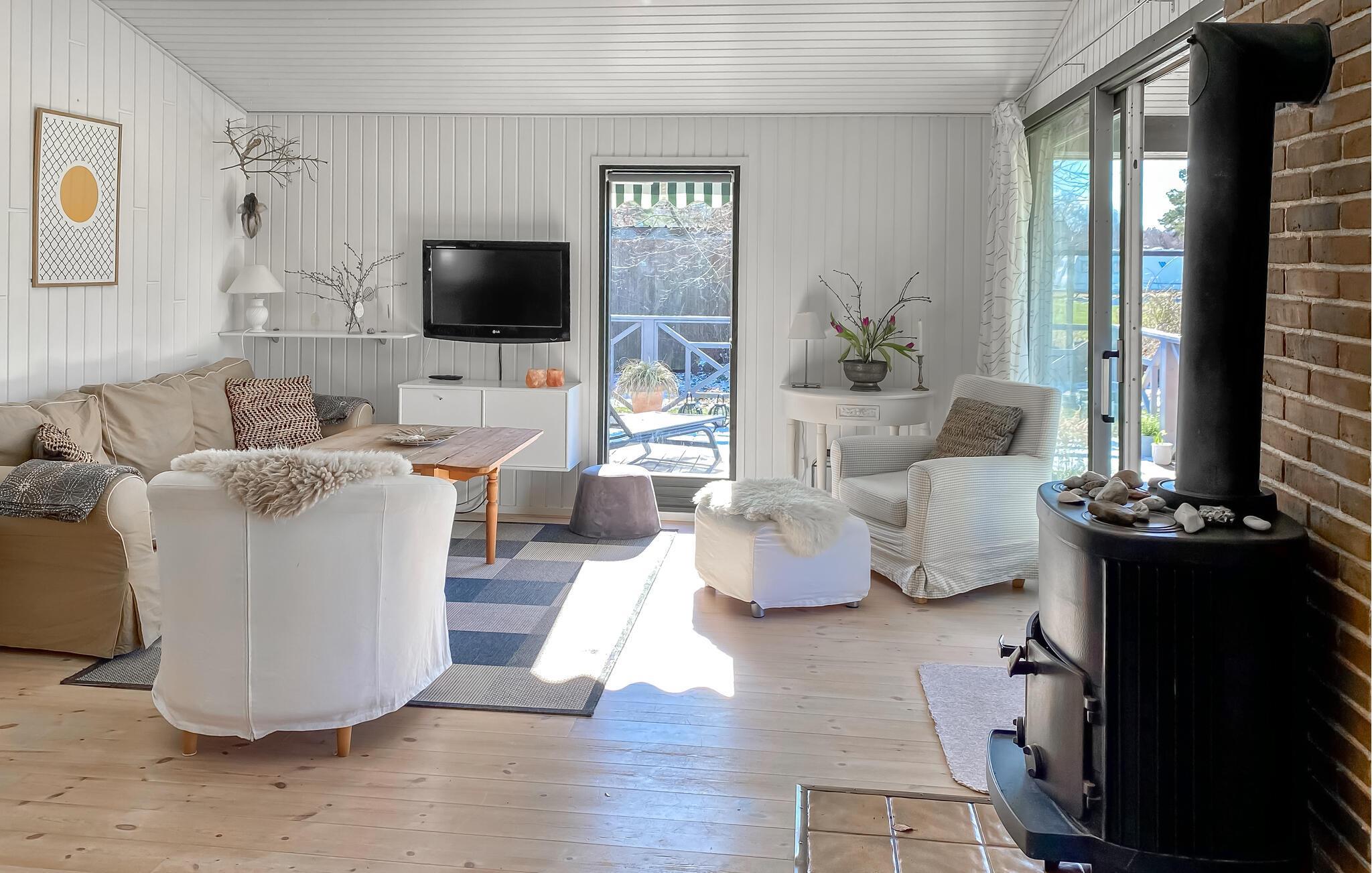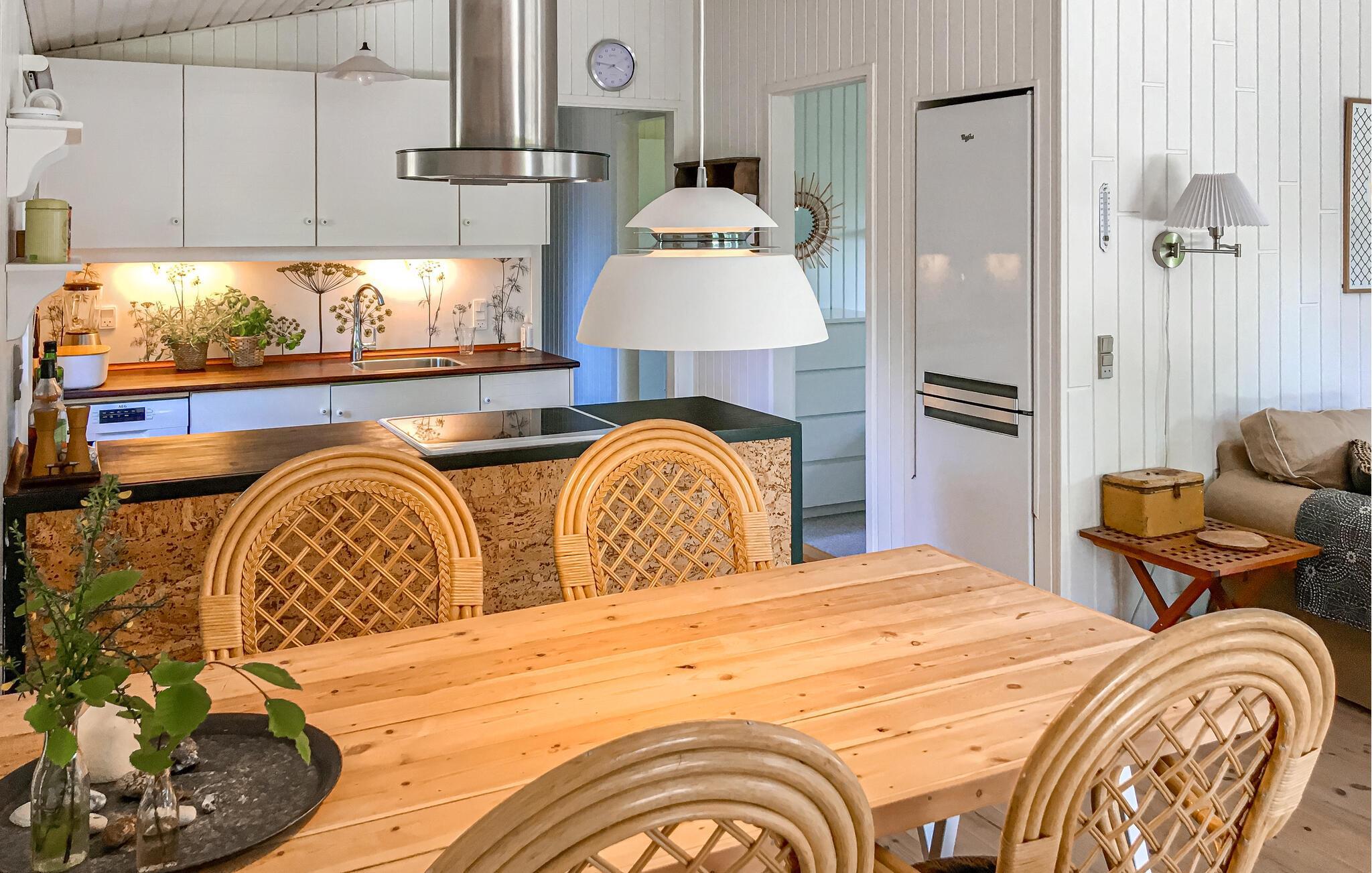 Treten Sie ein in dieses charmante Ferienhaus nahe der idyllischen Nyrup Bucht und genießen Sie eine entspannte Auszeit fernab des Alltags. Hier finden Sie den idealen Ort, um zur Ruhe zu kommen und Ihre freien Tage in vollen Zügen zu genießen. Bereiten Sie in der offenen Küche ein ausgiebiges Frühstück zu und nehmen Sie es anschließend im angrenzenden Essbereich ein. Die großen Fenster sorgen für viel Tageslicht und eine freundliche, einladende Atmosphäre. Lassen Sie den Abend am Kaminofen ausklingen, während das knisternde Feuer für wohlige Wärme sorgt.