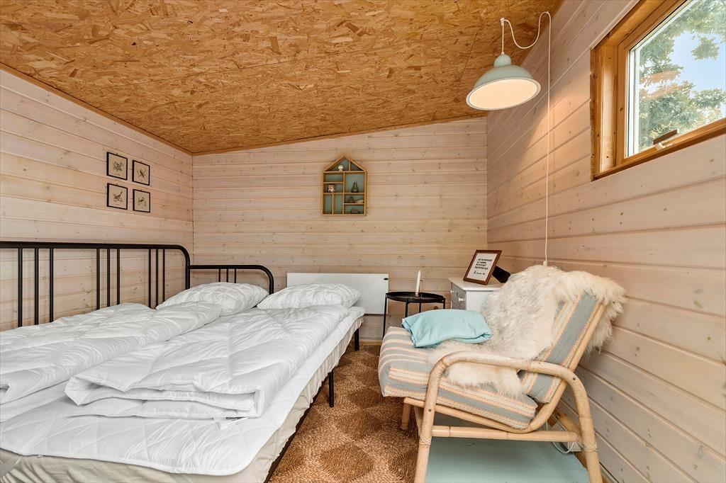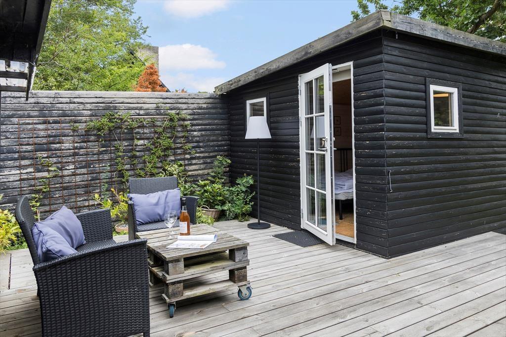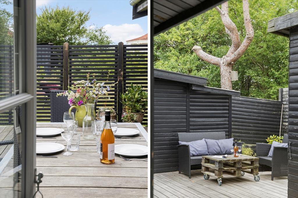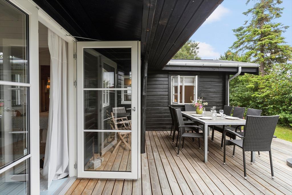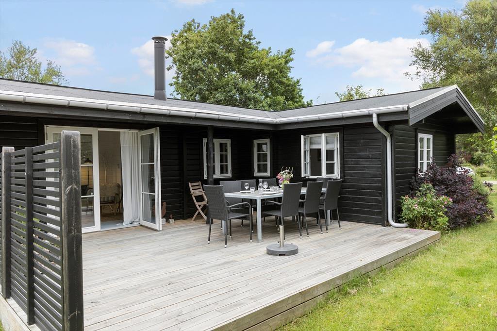 An warmen Tagen stellst du die Terrassentür weit auf, und lässt die frische Seeluft durch das ganze Haus strömen. Die Terrasse und der Garten sind mindestens genauso schön, wie das Haus selber. Auf der großen Holzterrasse mit Liegestühlen spricht nichts gegen viele erholsame Tage. Du kannst auf dieser Terrasse wunderbar im Kreise deiner Lieben frühstücken und lange Tage mit einem köstlichen Abendessen vom hauseigenen Grill ausklingen lassen. Wenn euch der Sinn zwischendurch nach ein wenig Bewegung steht, begebt ihr euch einfach auf die Grasfläche, auf der ihr beispielsweise eine Runde Fußball spielen könnt. Gemütliche Eckchen und ansprechende Sitzgelegenheiten bieten beste Voraussetzungen für laue Sommerabende mit einem guten Glas Wein, angeregten Gesprächen und hübschen Ausblicken auf den funkenden Sternenhimmel über Djursland. Kurzum, diese Außenbereiche verleihen deinem Urlaub das gewisse Etwas und maximieren dein Urlaubserlebnis in wunderschöner Weise.