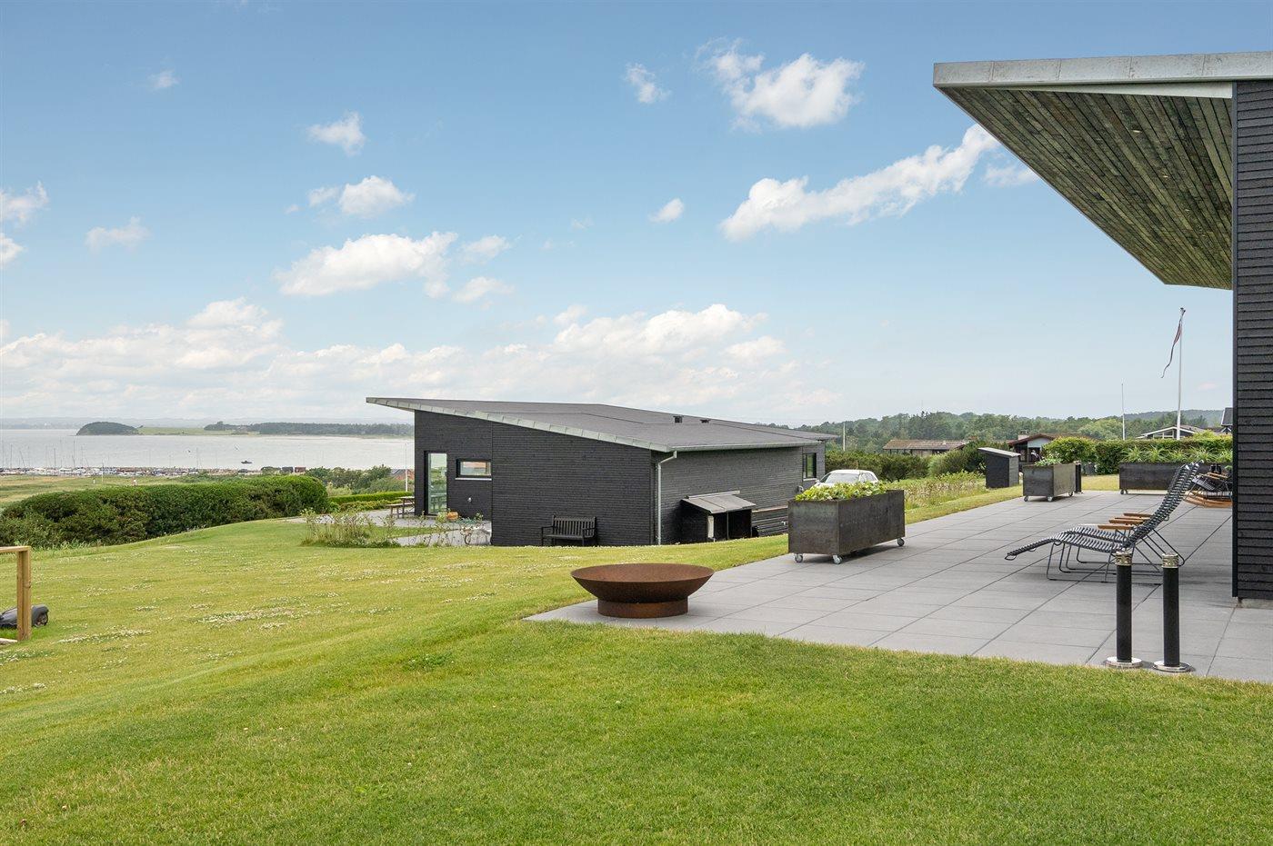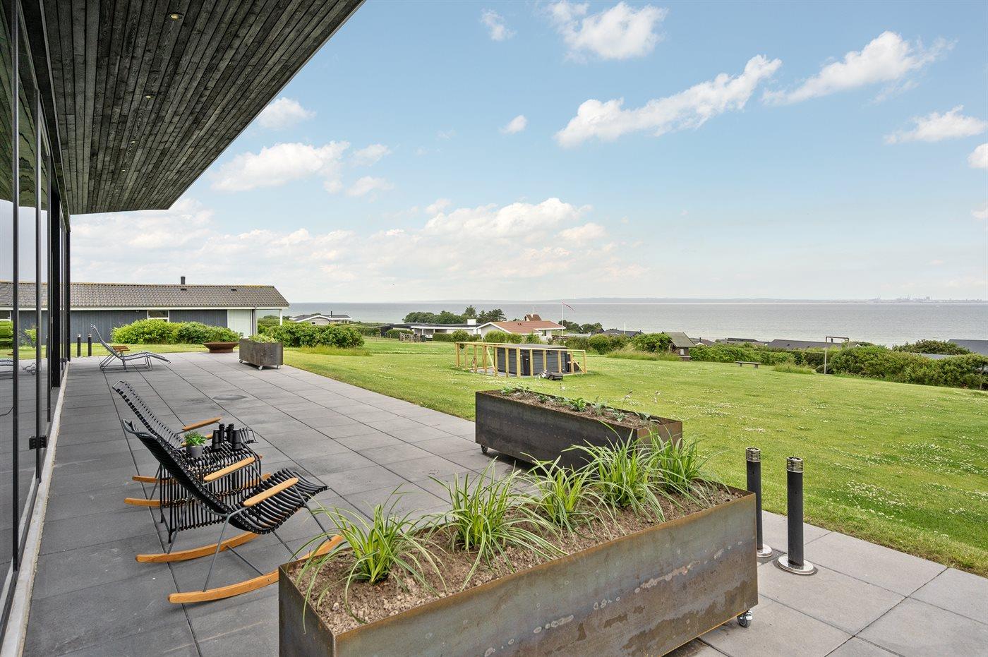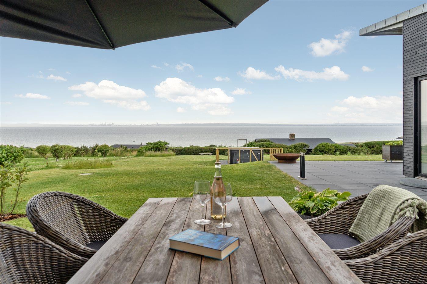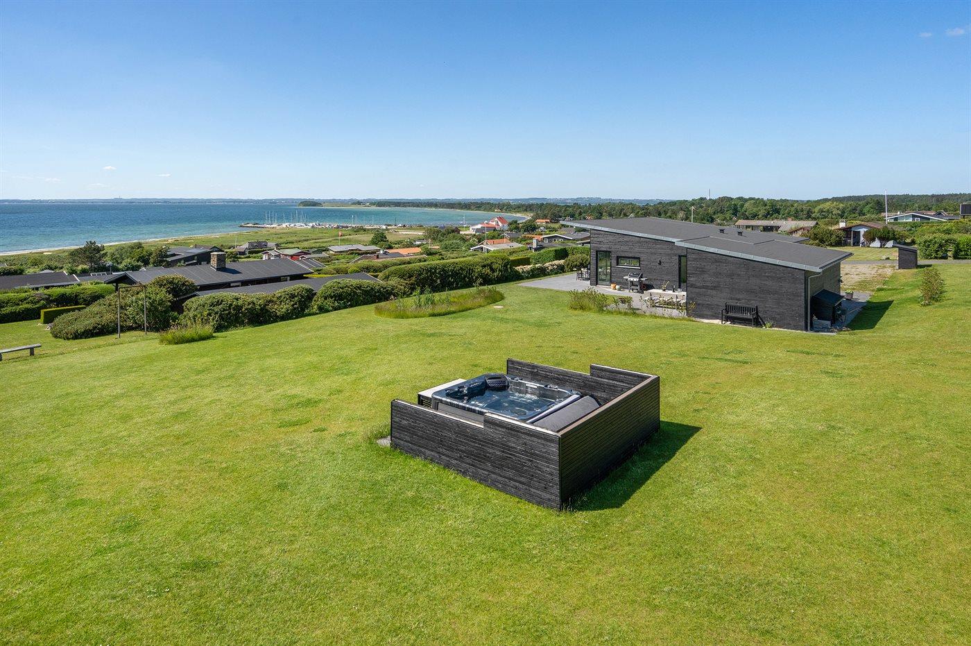 Modernes Ferienhaus in Knebel mit 180° Wasserblick und Whirlpool für entspannte Urlaubstage.