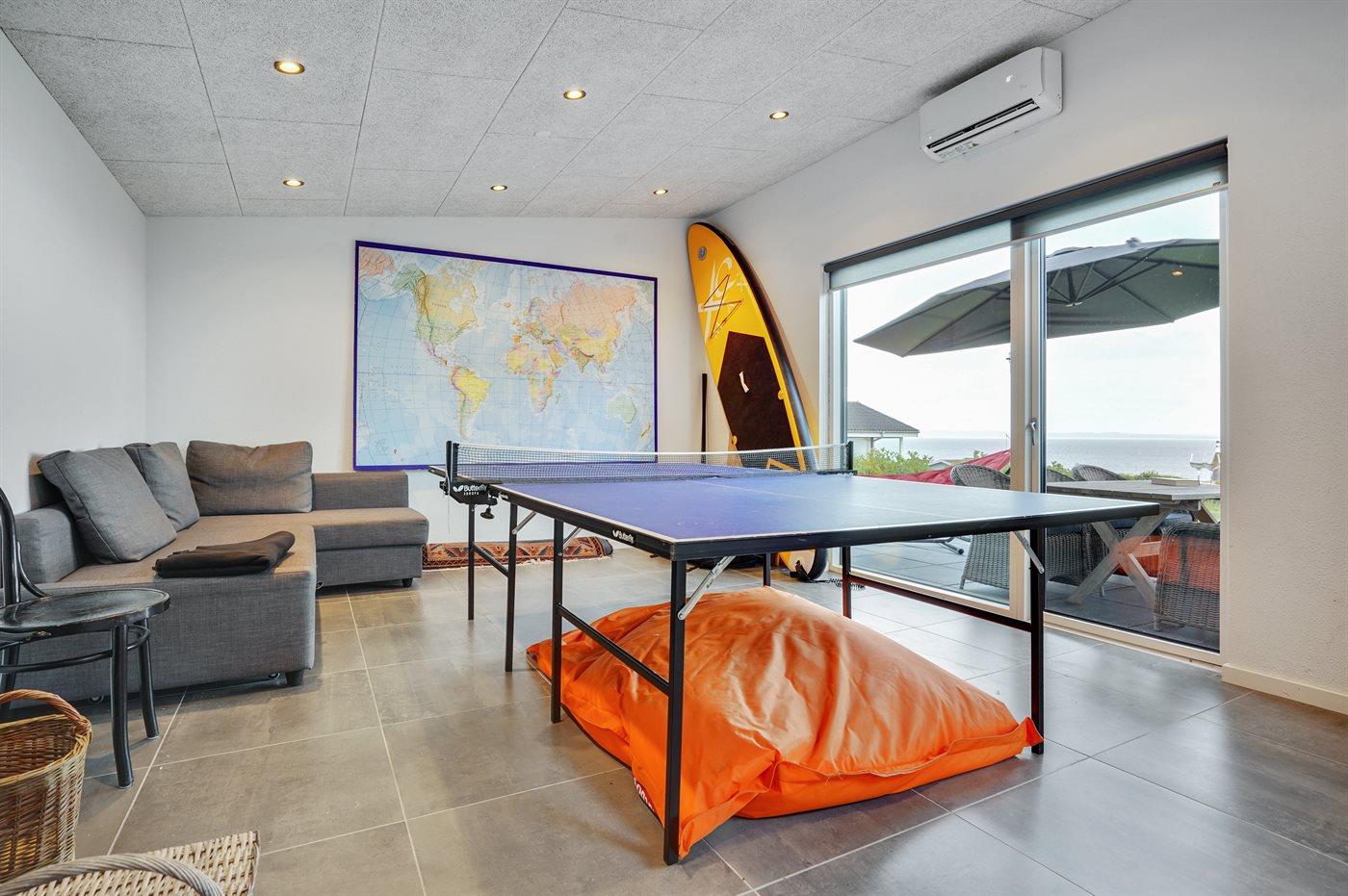 Ein einmalig gut gelegenes und modernes Ferienhaus, 2020 gebaut, mit 180 Grad Panoramablick über das Wasser! Sie können die Aussicht sowohl von der großen Terrasse als auch vom Inneren des Hauses genießen. In einem separaten Gebäude neben dem Haus befindet sich ein Tischtennistisch.