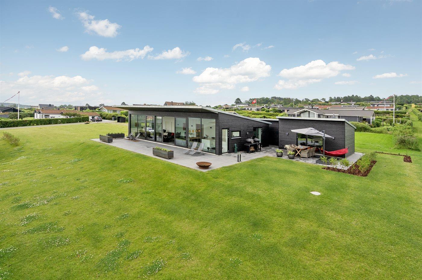 Die Ferienunterkunft liegt auf einem 1455 m² großen Gartengrundstück. Die Entfernung zum Meer beträgt 200 m. Die nächste Einkaufsmöglichkeit liegt 5000 m entfernt. In einem Abstand von 26400 m gibt es einen Golfplatz. Es steht ein 90 m² Terrassenareal zur Verfügung. Außerdem gibt es 30 m² überdachte Terrasse. Geräteraum.Lagerfeuerstelle.An Sommerabenden sorgt der Außenkamin für eine gemütliche Atmosphäre. Es steht ein Grill zur Verfügung. Es ist ein Ladestecker für Elektroautos installiert. Parkplatz auf dem Grundstück.