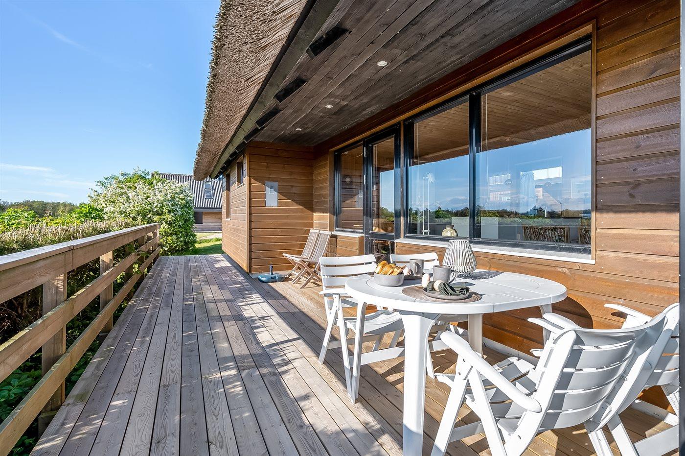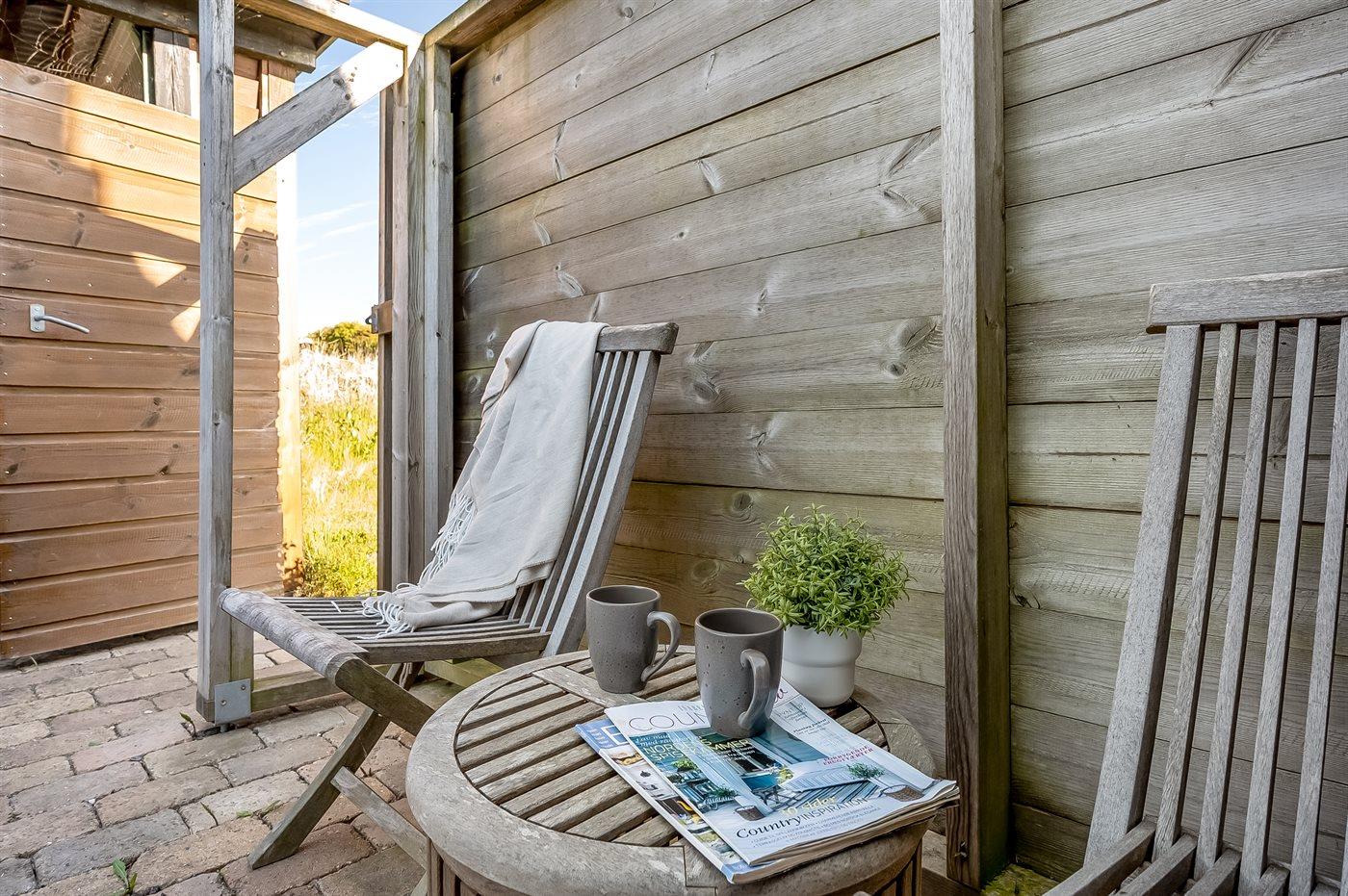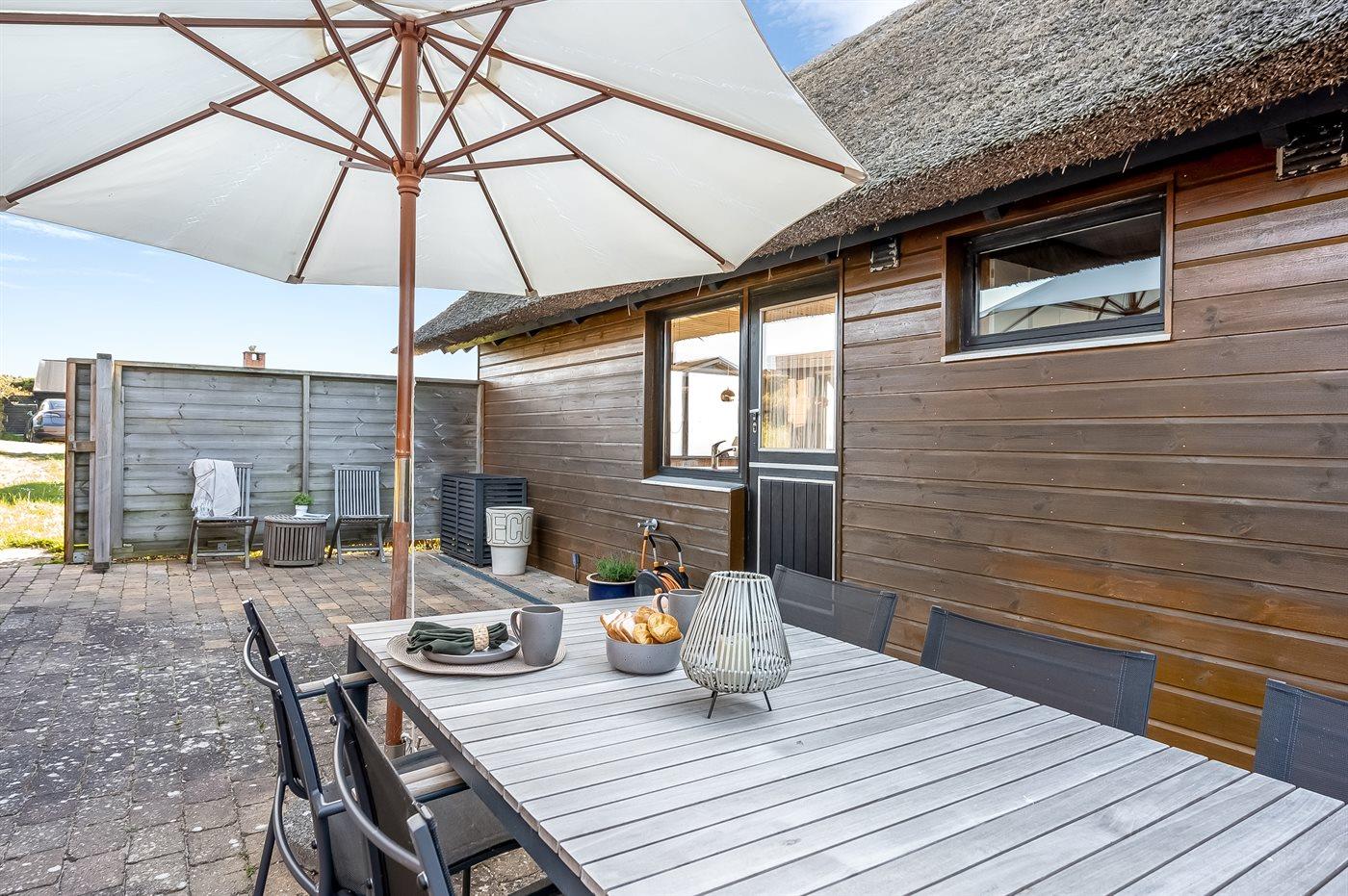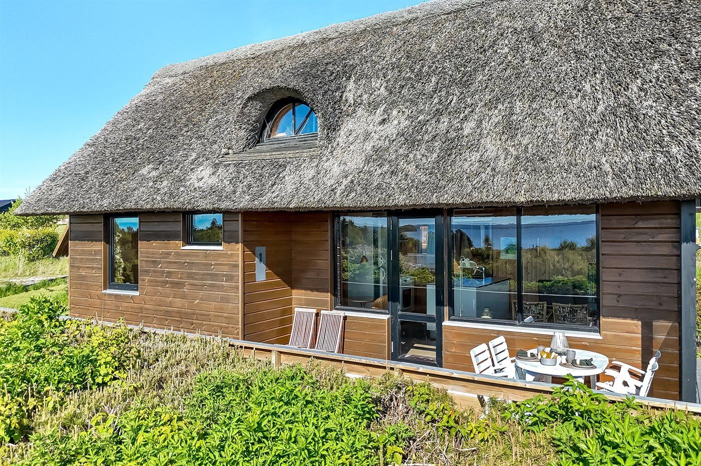 Ferienhaus mit Meerblick und geschütztem Garten