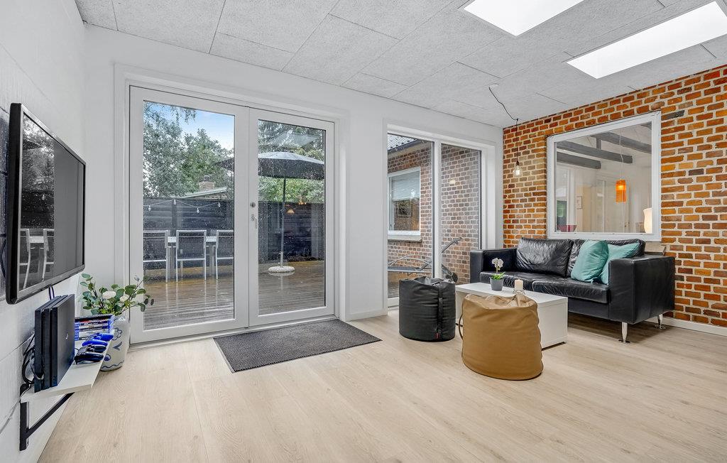 Modernes, gemütliches Ferienhaus nahe Skødshoved Strand mit Kamin, Terrasse und Grillplatz für erholsame Urlaubstage.