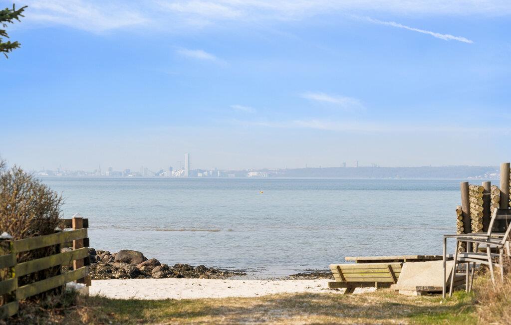 Nur wenige Schritte vom Skødshoved Strand entfernt liegt dieses charmante Ferienhaus in ruhiger Lage. Das klassische Ferienhaus mit der einladenden Terrasse und der grünen Umgebung bietet eine angenehme Atmosphäre. Im Inneren erwarten Sie hohe Decken, helle Holztöne, ein behaglicher Kaminofen und viel Tageslicht. Der offene Wohn- und Essbereich geht direkt in die großzügige Küche über und schafft ein angenehmes Raumgefühl. Genießen Sie Ihre Abende auf dem Sofa bei knisterndem Feuer oder verbringen Sie gesellige Stunden am Esstisch mit Blick in den Garten.