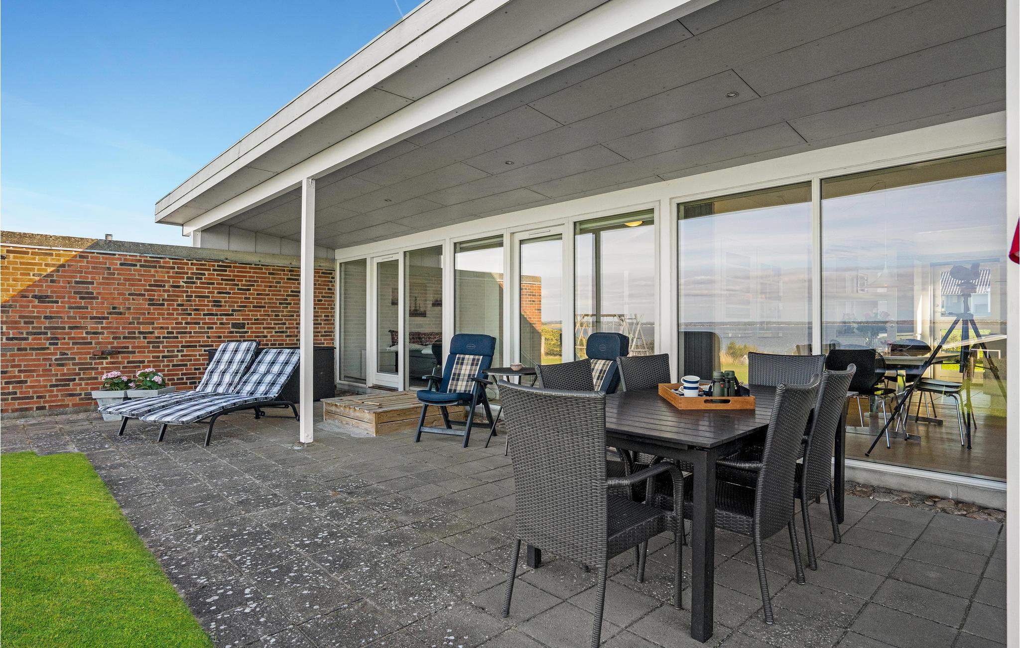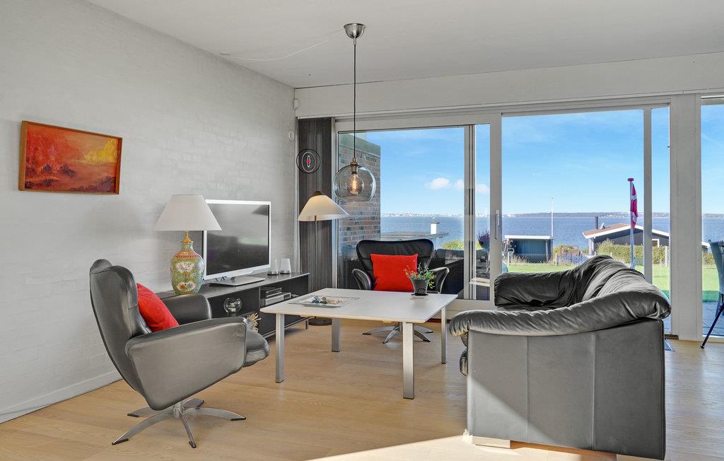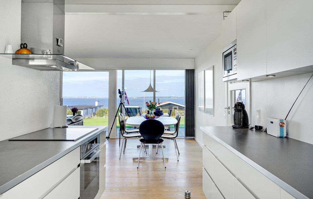 Willkommen in diesem schönen Ferienhaus, dass Sie mit einer großen Fensterfront zur Meerseite begrüßt. Das Haus ist von natürlichem Licht durchflutet und schafft damit eine tolle Wohlfühlatmosphäre. Im offenen Wohnraum können Sie zusammen kochen, essen, spielen oder einfach nur entspannen. Genießen Sie die Aussicht und Ihre Urlaubsmahlzeiten auf der Terrasse. Sie können von hier das gegenüberliegende Aarhus sehen. Der große Garten lädt Ihre Hunde und Kinder zum Toben und Spielen ein. Spielgeräte runden das Angebot ab, während Sie sich auf den Sonnenliegen ausruhen können.
