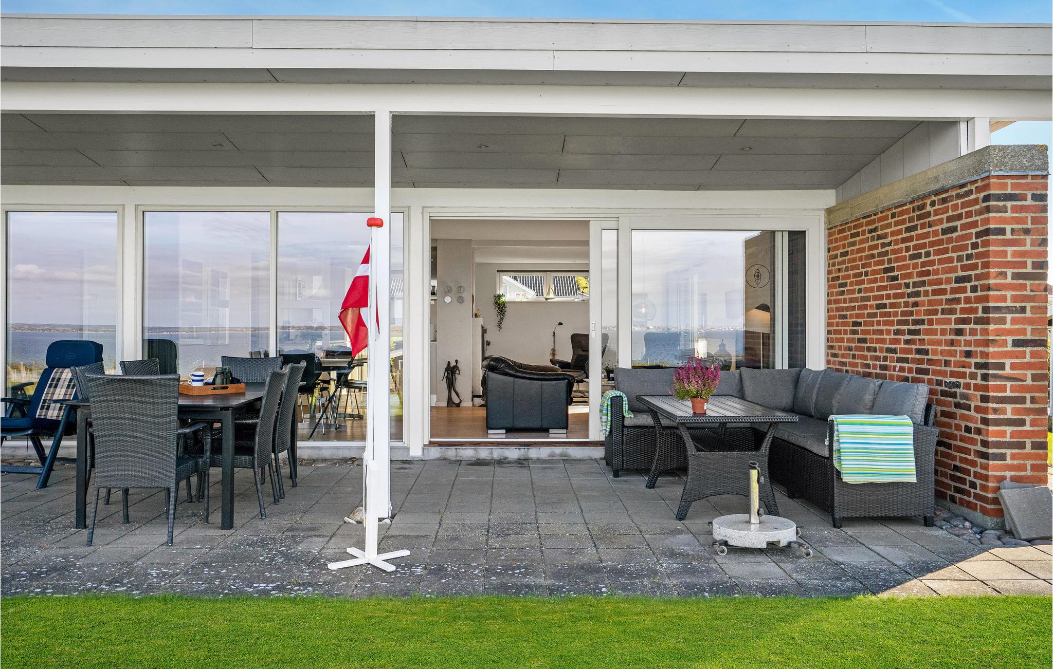 Dieses helle Ferienhaus bei Skødshoved Strand bietet traumhaften Meerblick und eine große Terrasse zum Entspannen.