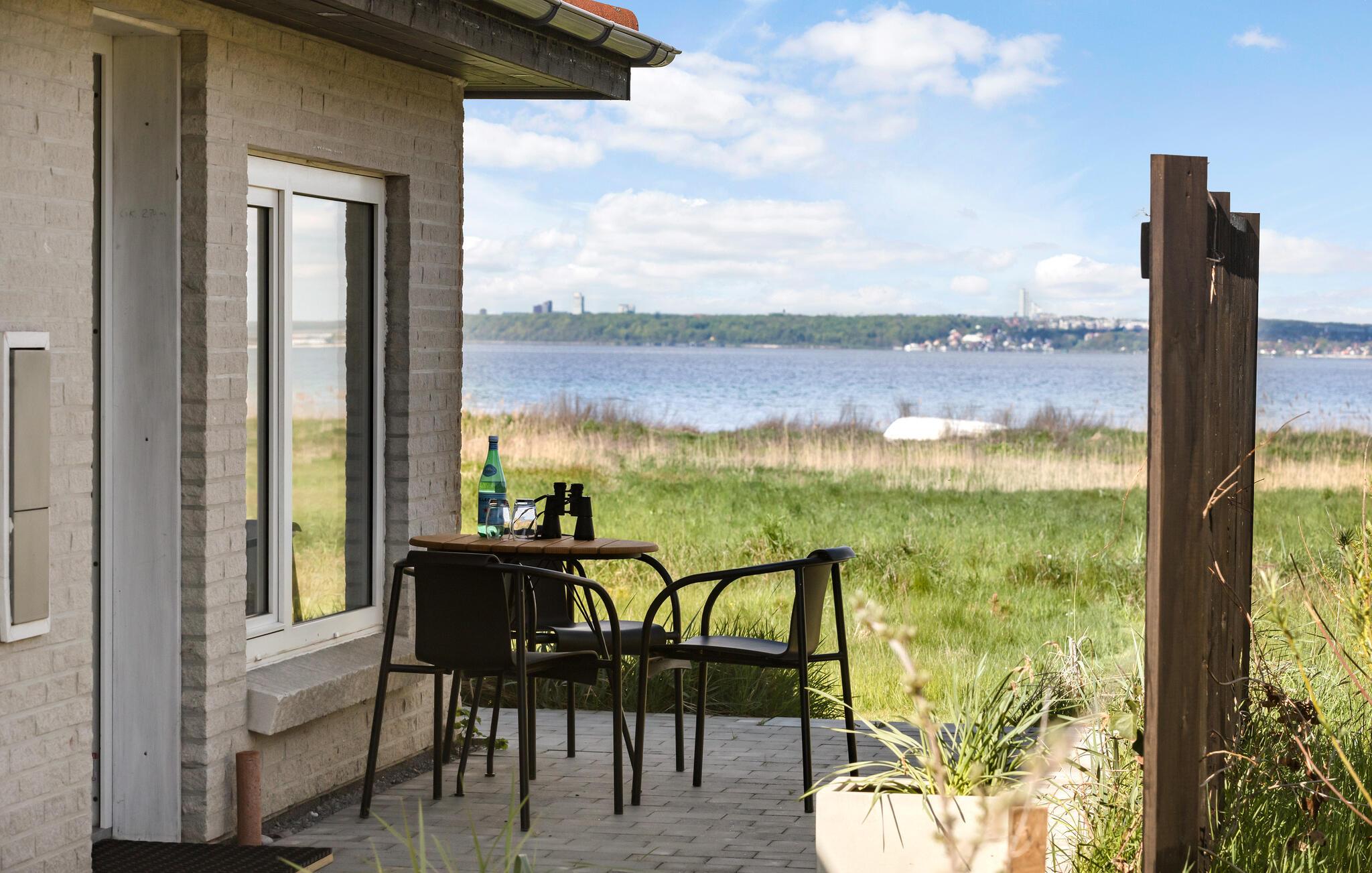 Gemütliches Ferienhaus nahe Skødshoved Strand mit Meerblick, Terrasse und moderner Ausstattung für einen entspannten Urlaub.