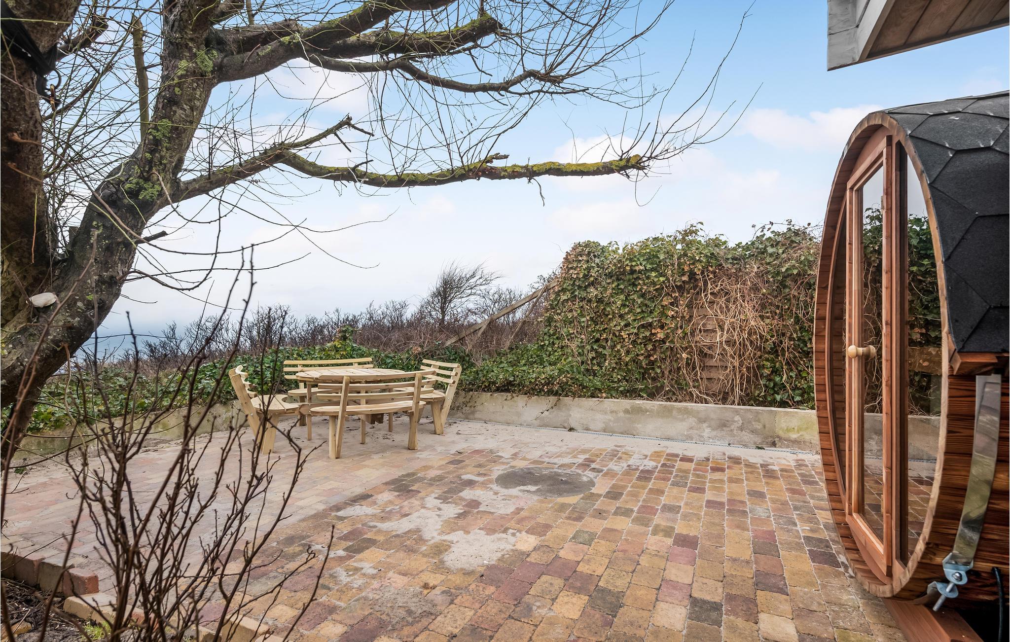 Charmantes Ferienhaus direkt am Strand von Skødshoved mit Sauna, Panoramablick und kinderfreundlichem Sandstrand.