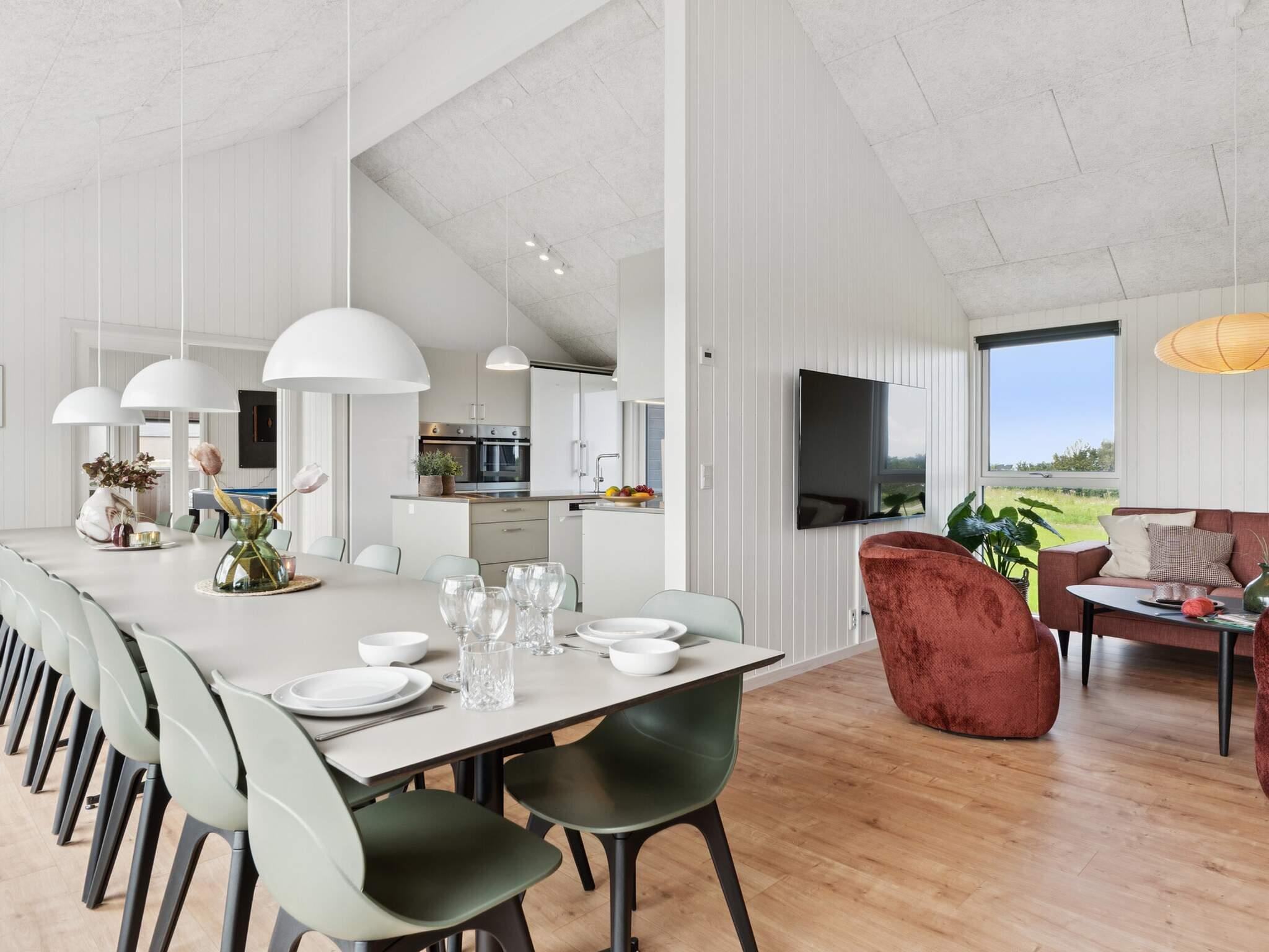 Der große Küchen- und Essbereich ist der natürliche Treffpunkt des Hauses, wo die ganze Gruppe zusammenkommen kann. Hier finden Sie eine XL-Küche mit zwei Backöfen, zwei Geschirrspülern und zwei Kühlschränken, sodass das Kochen selbst für große Gruppen zum Kinderspiel wird. Der Essbereich ist geräumig und ermöglicht es allen, gemeinsam zu essen und sich dabei ungezwungen zu unterhalten. Wenn es Abend wird, können Sie sich in das gemütliche Wohnzimmer zurückziehen, Brettspiele spielen, Filme schauen oder einfach die Gesellschaft der anderen genießen.