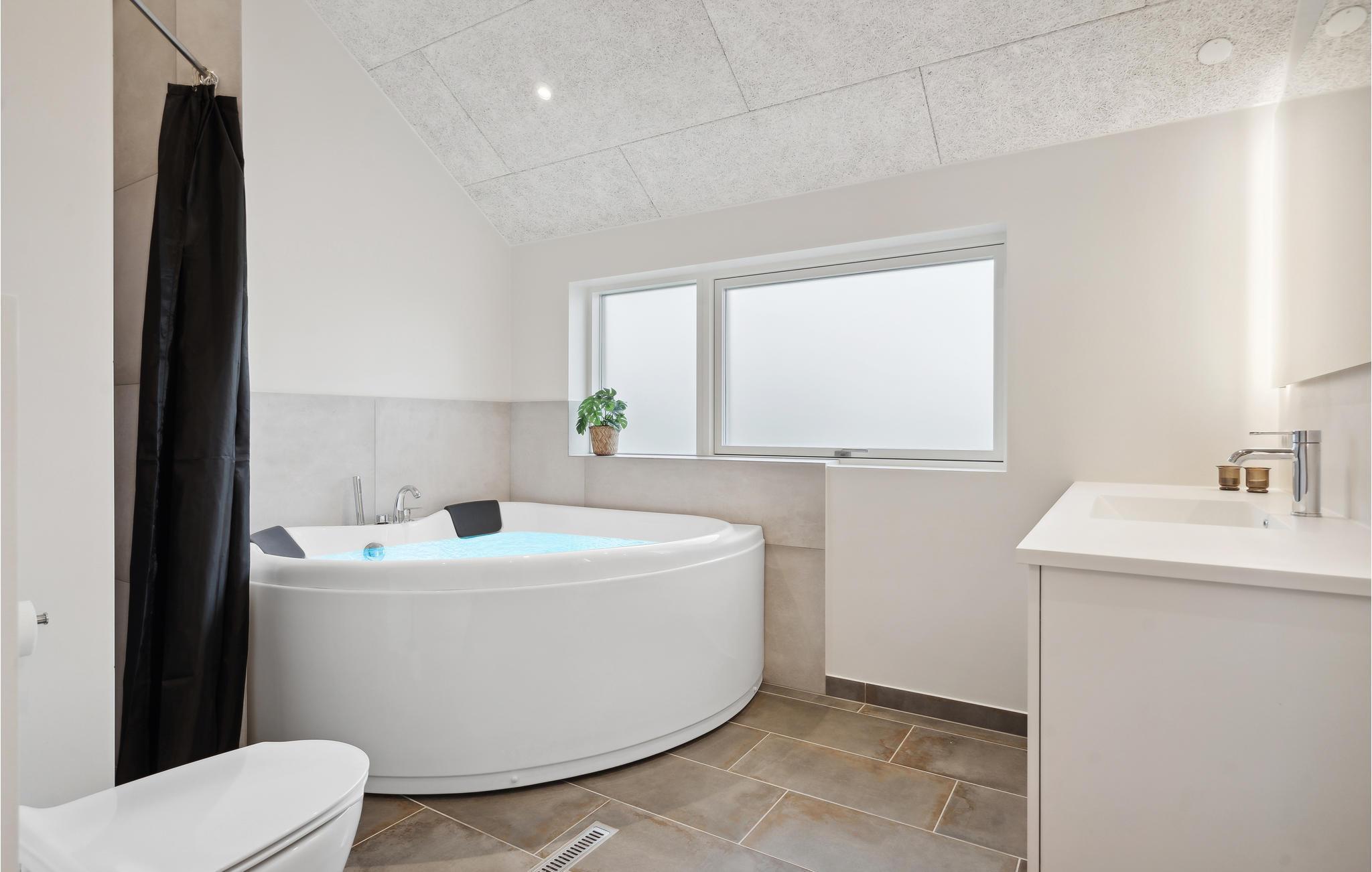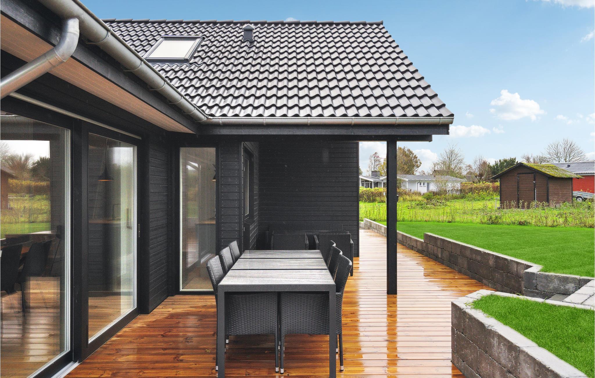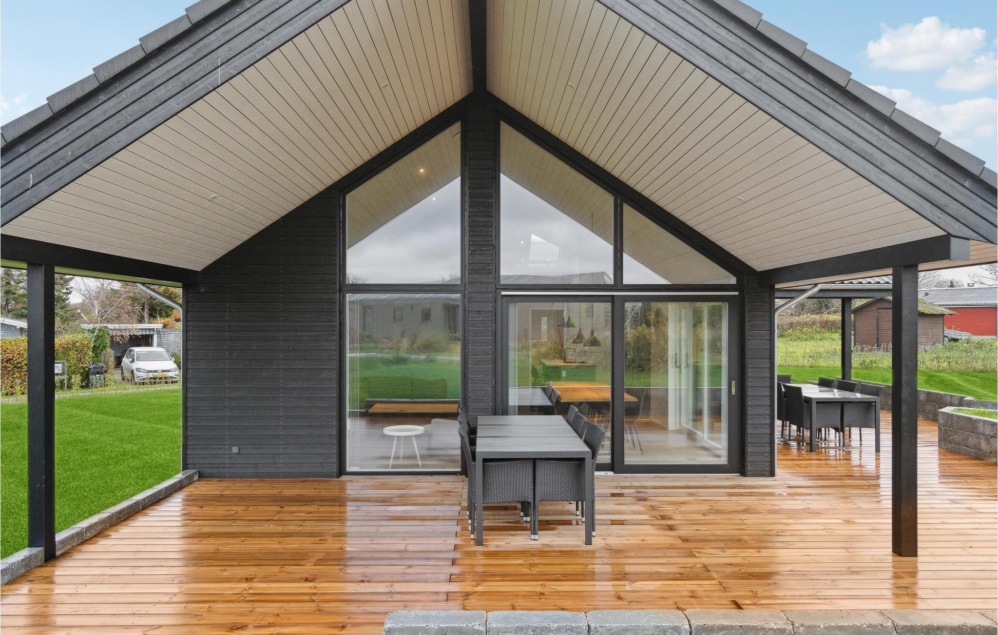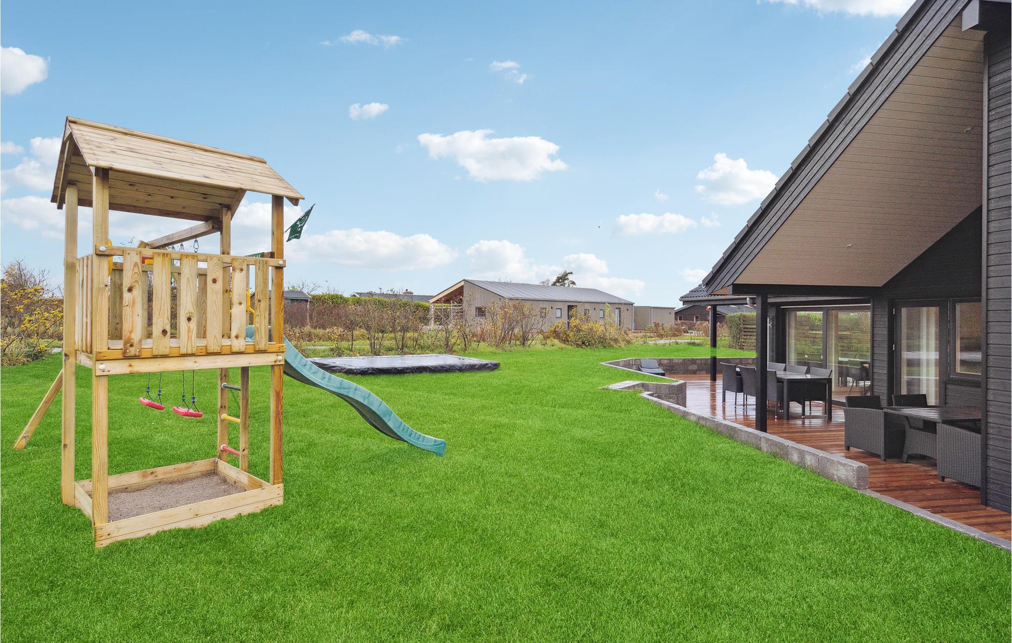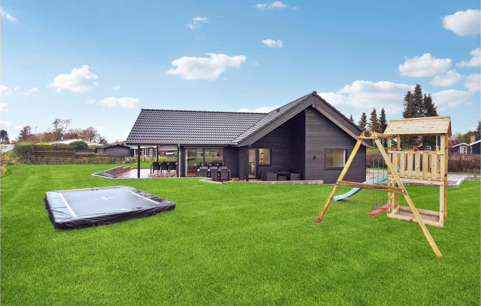 Modernes Ferienhaus mit Whirlpool, Spielplatz und Strandnähe an Fünens Nordküste.
