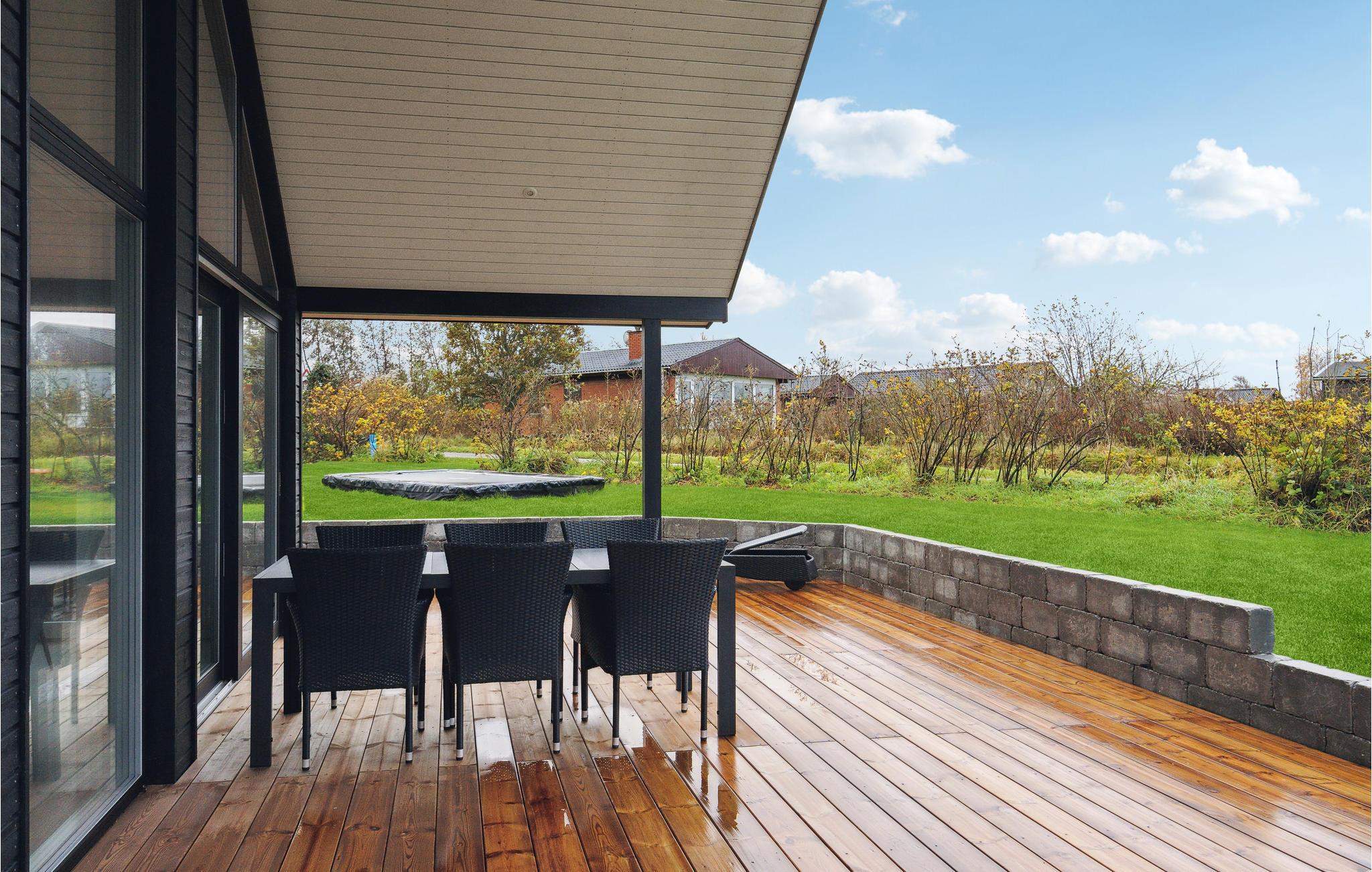 Am Morgen können Sie auf der schönen Holzterrasse Ihr Frühstück einnehmen, auf der Sie am Abend auch gemütlich grillen können. Schauen Sie Ihren Kindern zu, wie Sie den Garten einnehmen und sich beim Trampolinspringen und auf den Spielgeräten austoben.