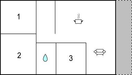 Badezimmer (nr. 1) - WC. Warmes und kaltes Wasser. Dusche