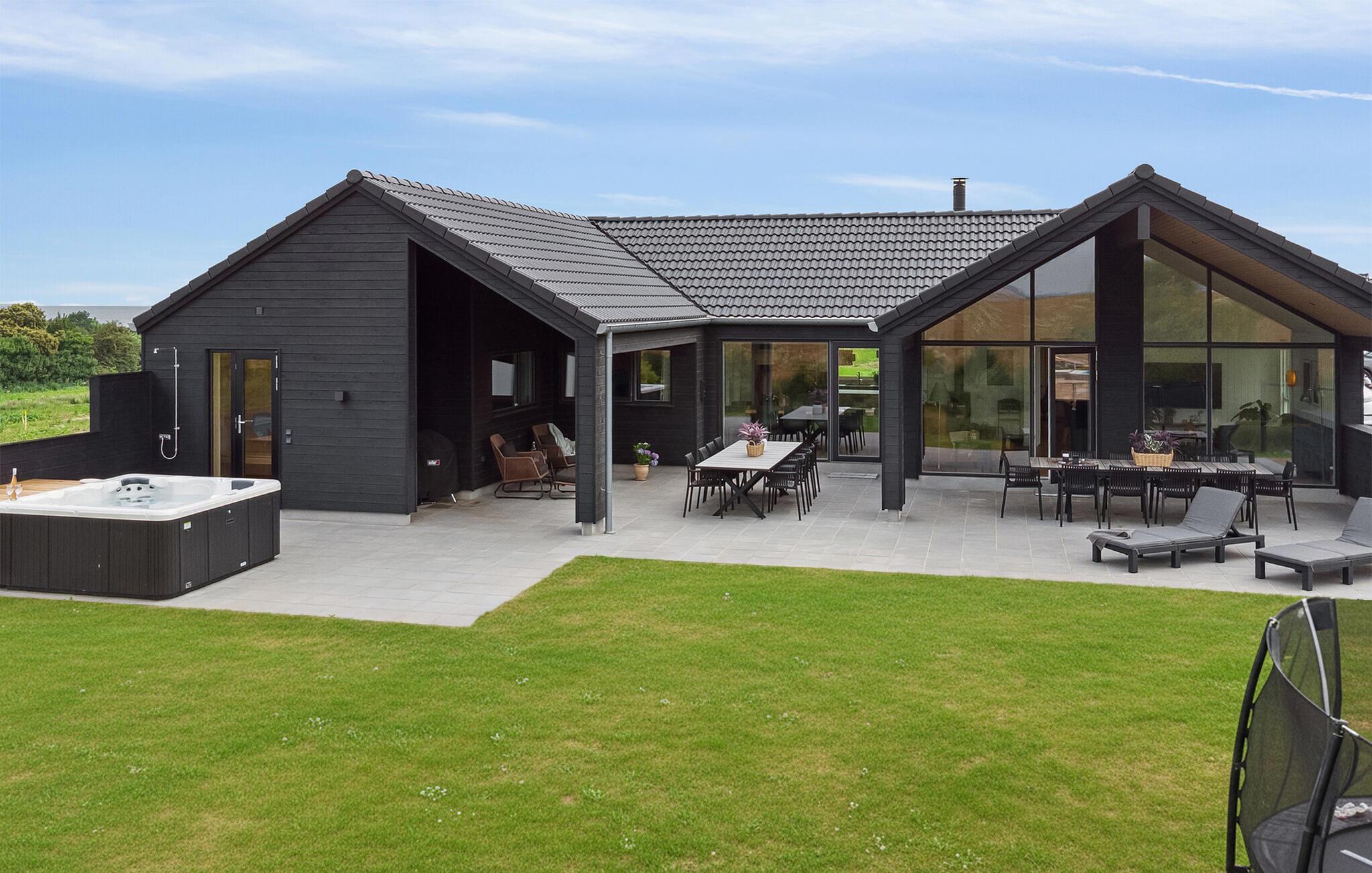 Komfortables Ferienhaus in Dänemark mit Innenpool, Sauna, Meerblick und großem Garten für entspannte Familienferien.