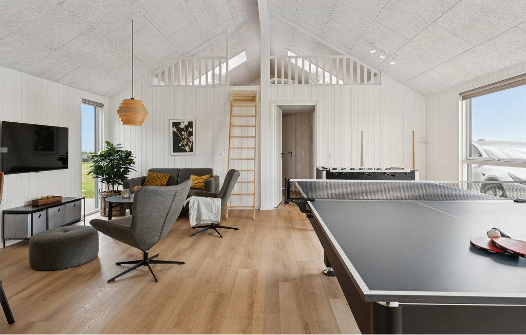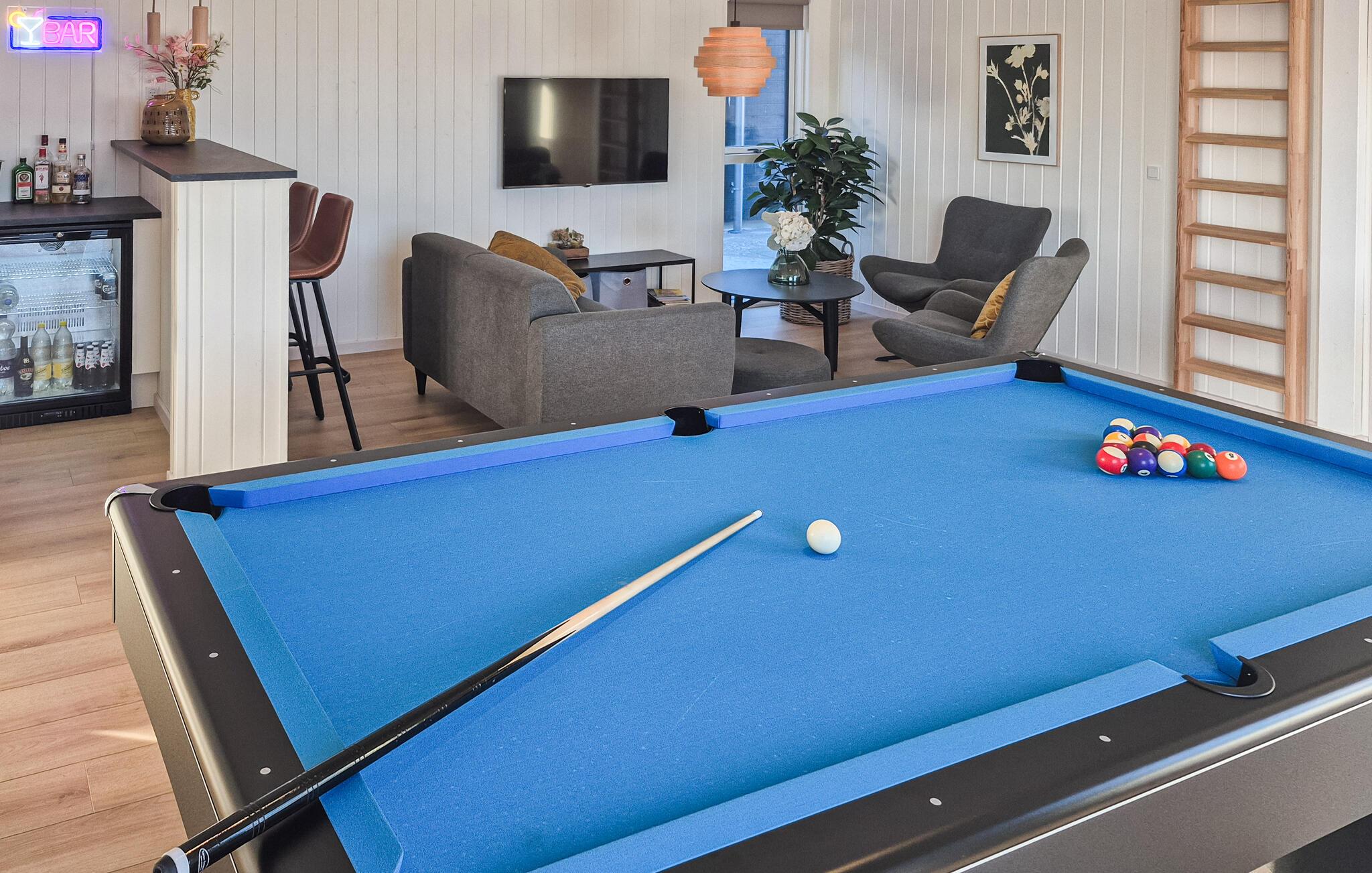 Hell und ansprechend begrüßt Sie dieses geräumige Haus und bietet alles für eine erholsame Auszeit, in der große und kleine Familienmitglieder auf Ihre Kosten kommen. Verbringen Sie vergnügliche Stunden im Pool mit Rutsche und entspannen Sie in der Sauna. Freuen Sie sich auf gemütliche Abende, wenn Sie von Ihren Unternehmungen zurückkehren, machen Sie es sich am Esstisch mit schönem Blick ins Freie bequem, lassen Sie das Abendessen nahtlos in einen Spieleabend übergehen, vergnügen Sie sich beim Kicker oder Billard oder plaudern Sie noch lange in geselliger Runde.
