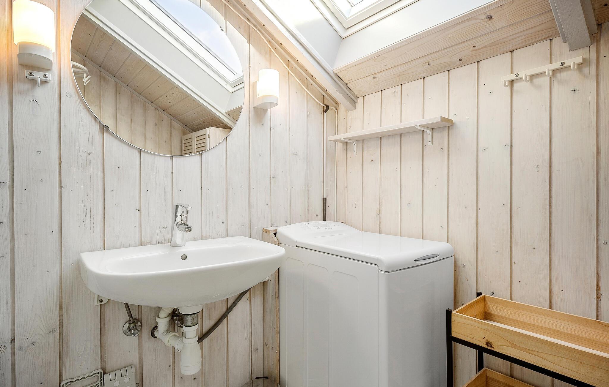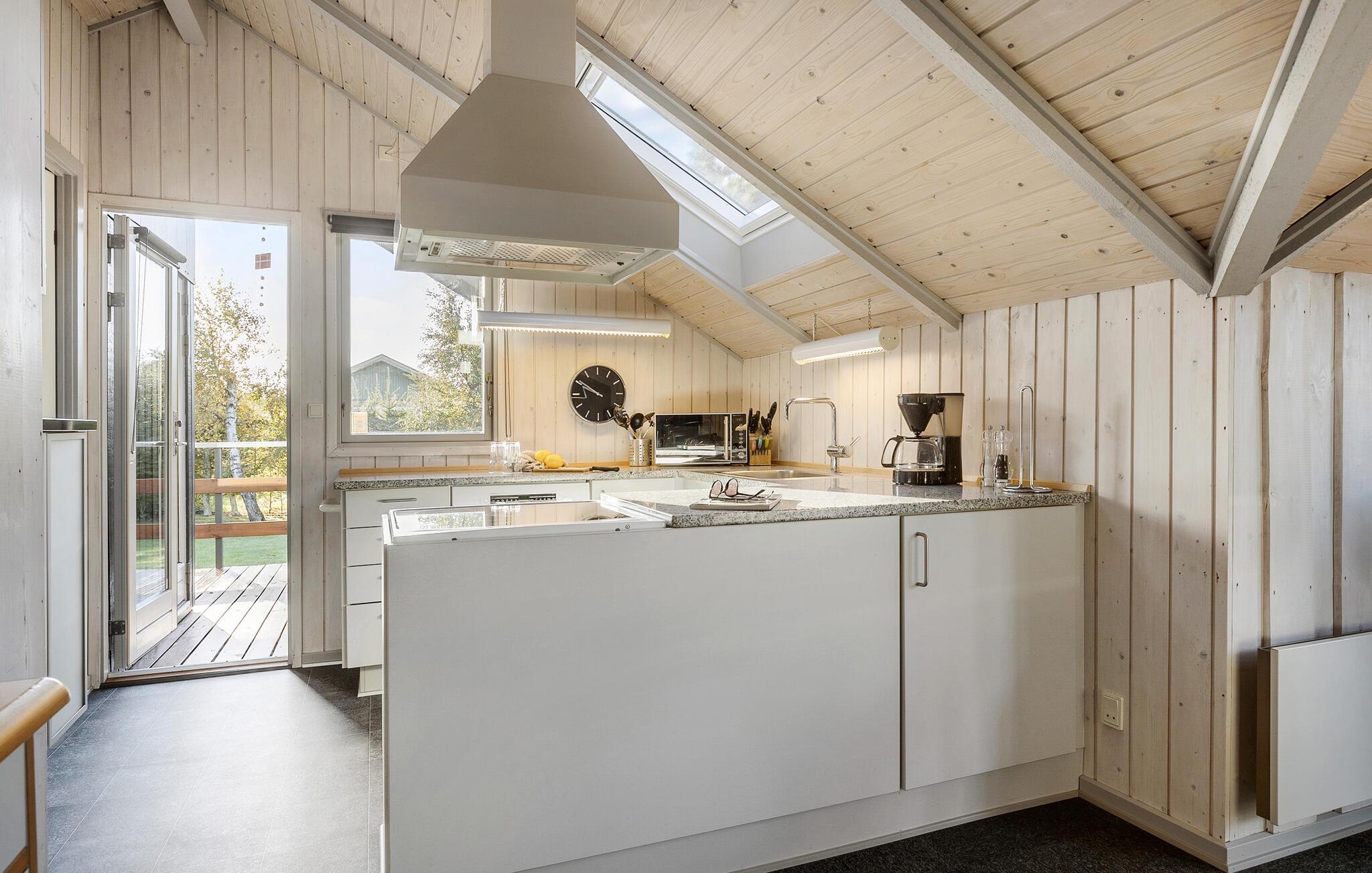 In Ihrem charmanten Ferienhaus am Skåstrup Strand auf der Insel Fünen erwartet Sie eine helle und gemütliche Einrichtung mit einer Wohnküche mit offenem Dachfirst. Die moderne Küche ist gut ausgestattet und lädt dazu ein, gemeinsame Mahlzeiten zuzubereiten. Der offene Wohnbereich mit bequemen Sofas sorgt für Unterhaltung und Entspannung. Die großen Fenster lassen viel Tageslicht herein und bieten einen Blick auf die grüne Umgebung.