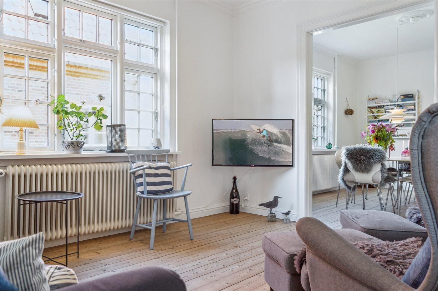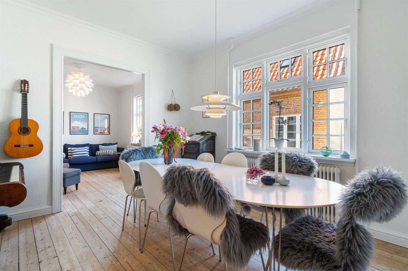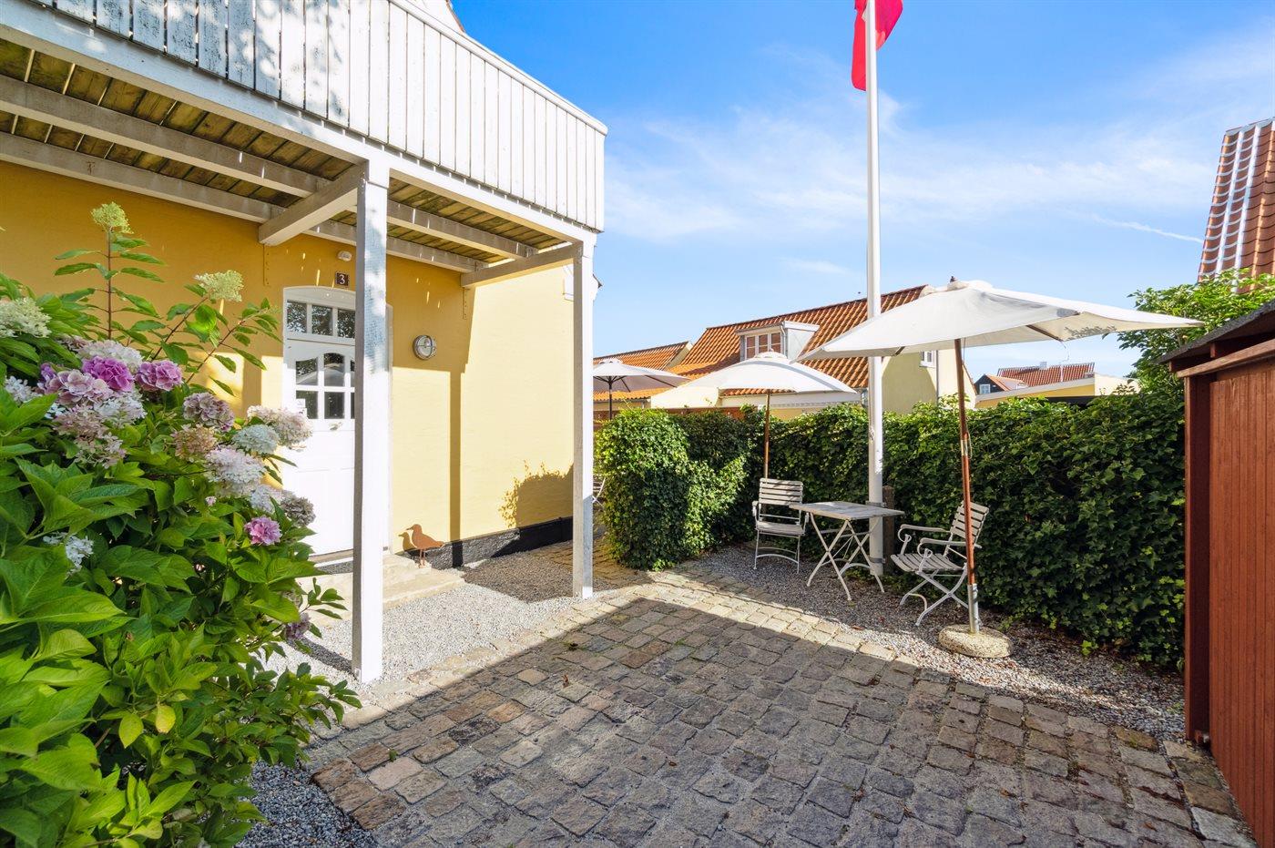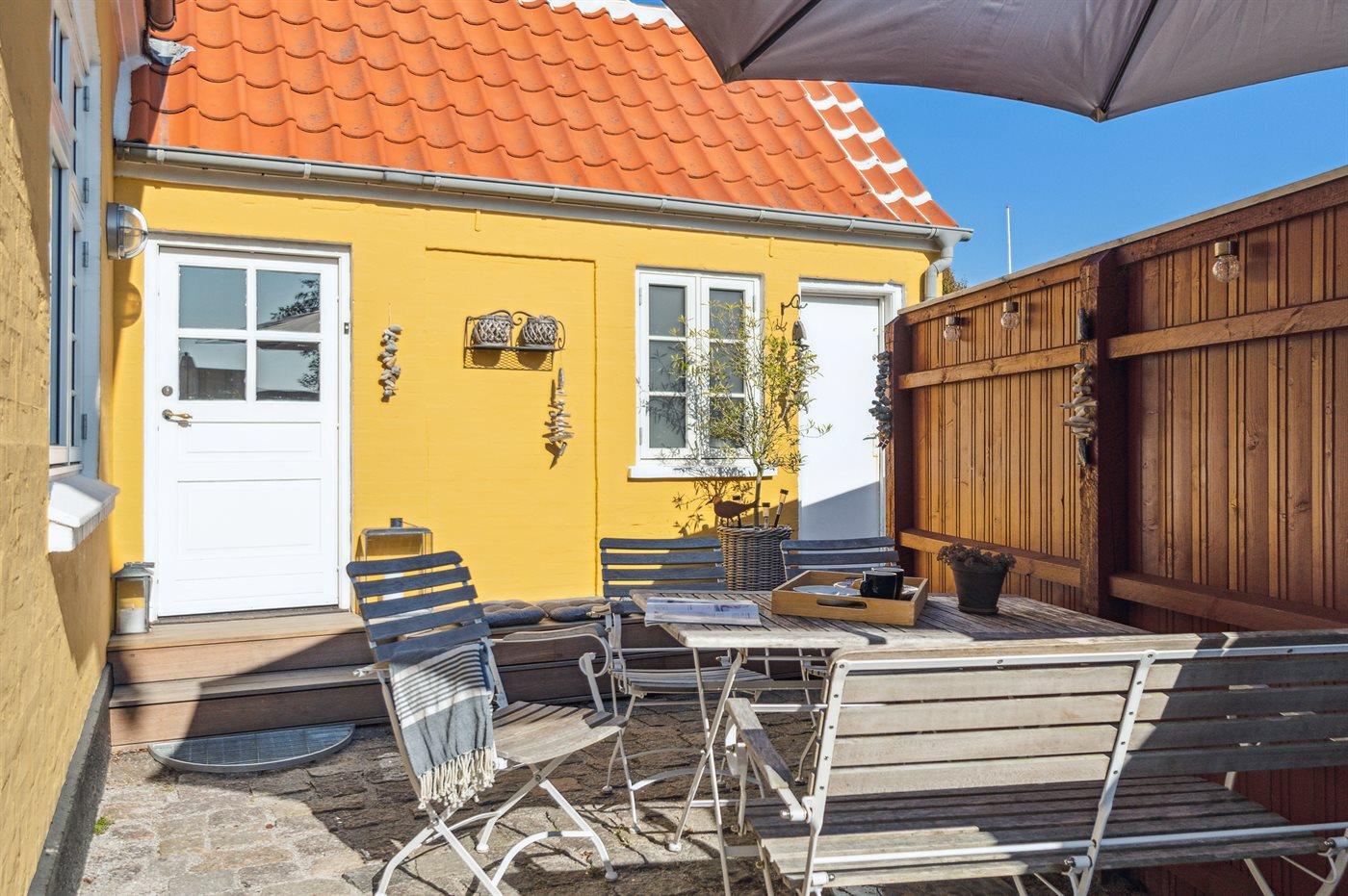 Gemütliches Skagenhaus mit einer charmanten Einrichtung im ursprünglichen Stil. Das Haus liegt zentral in Skagen auf einem kleinen Grundstück mit Terrasse und gemütlicher Ecke am Ende Einer Sackgasse.