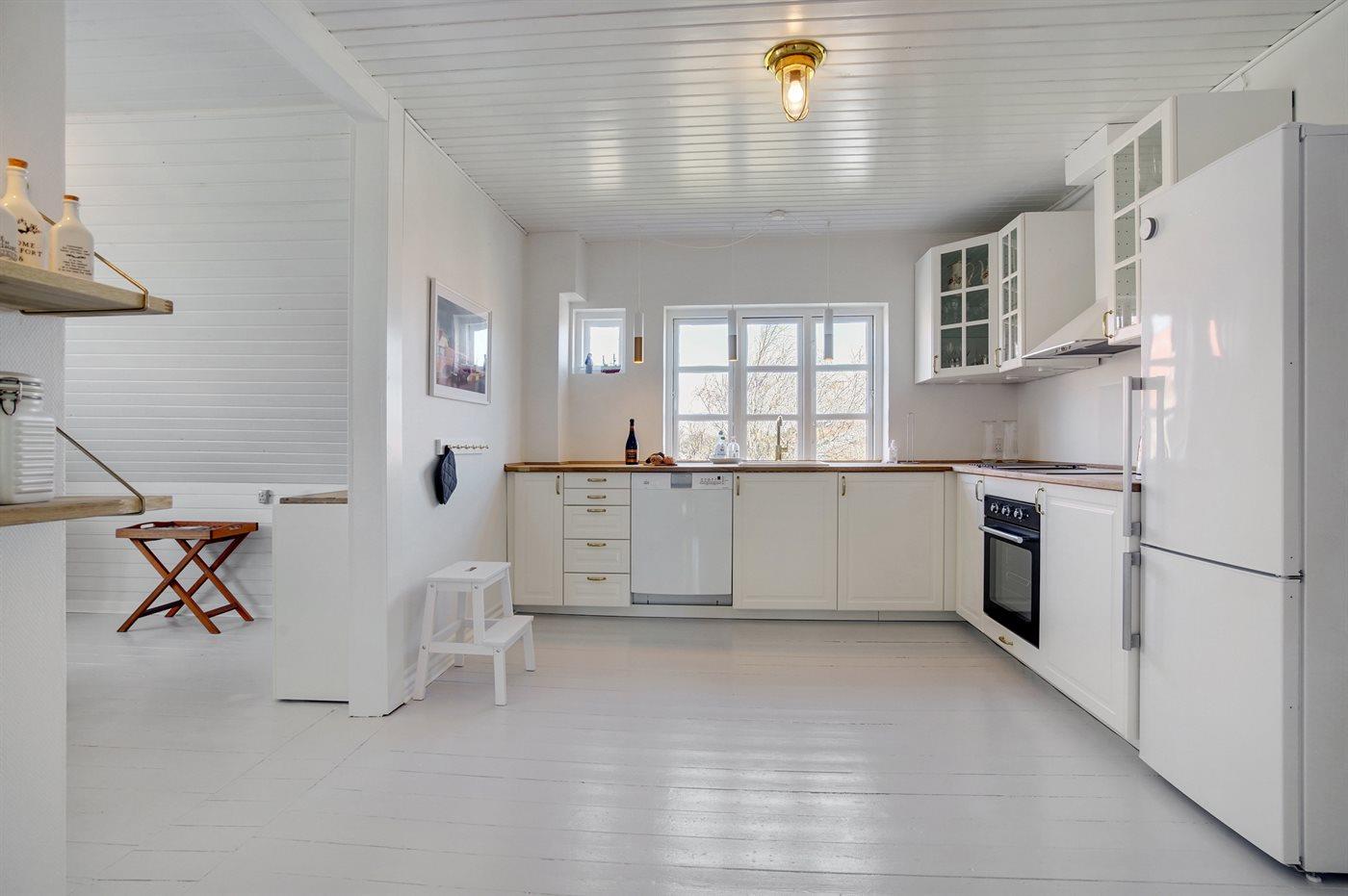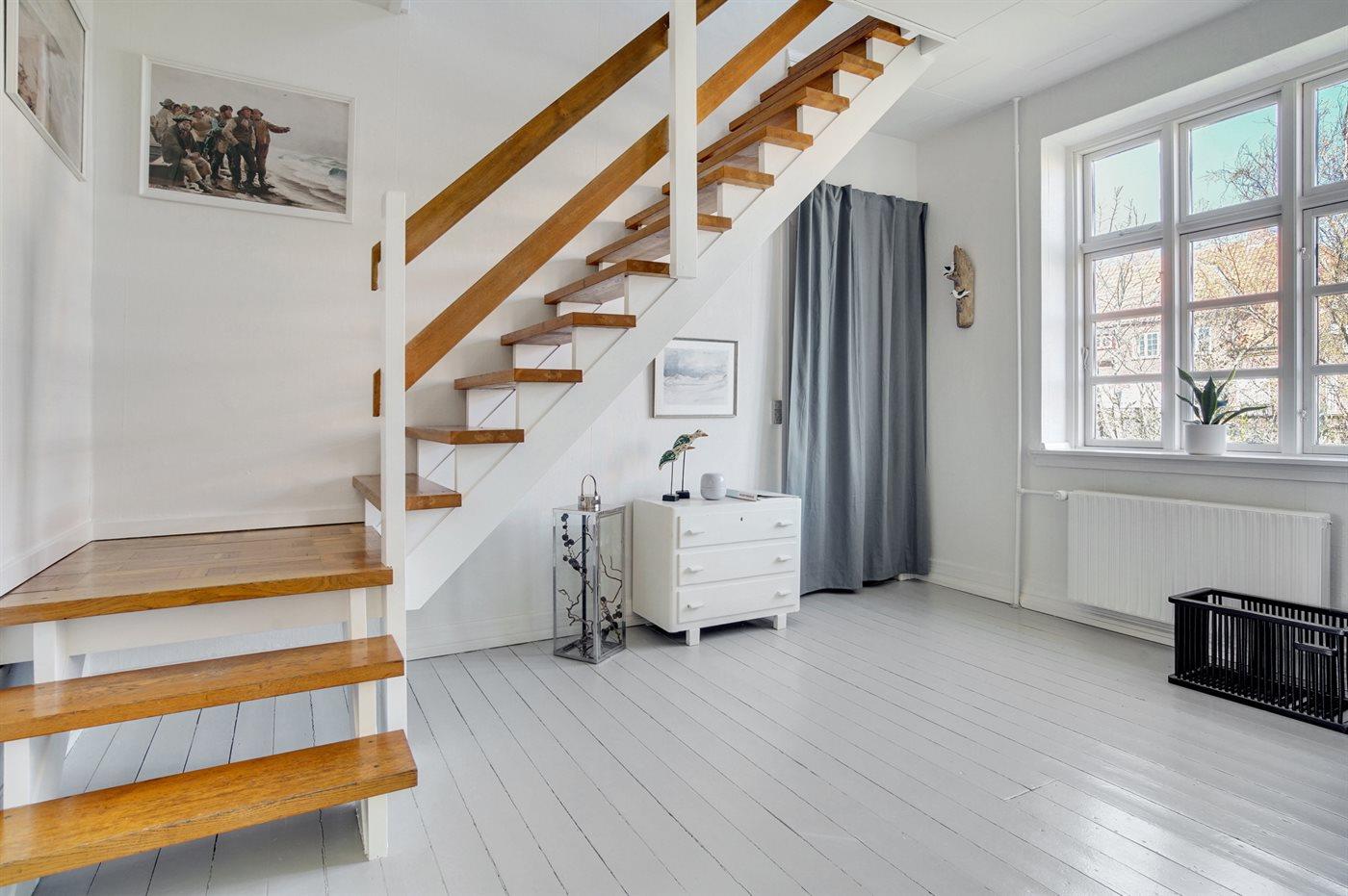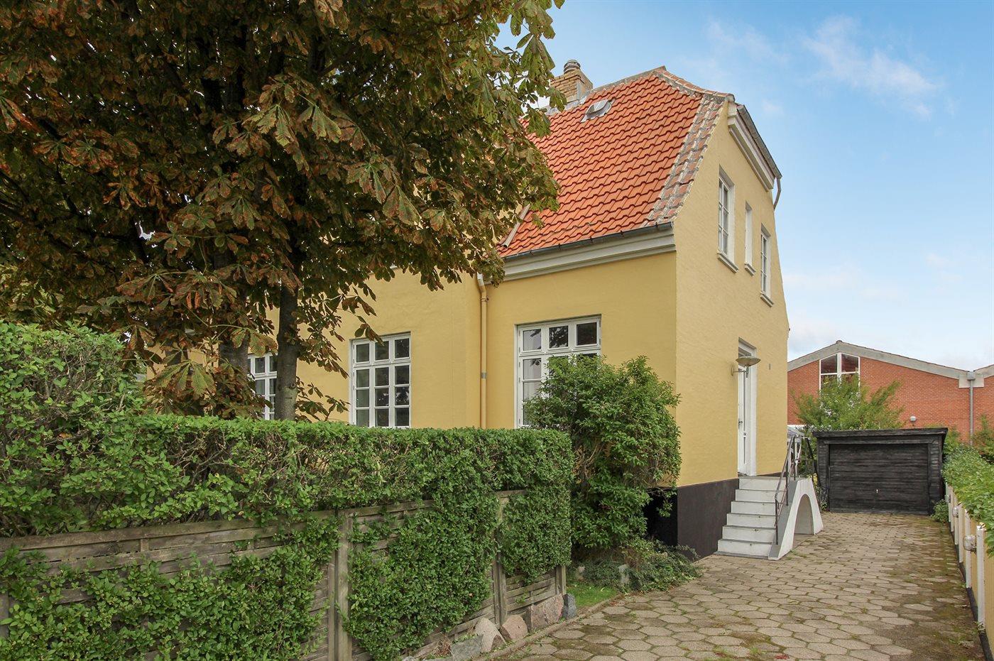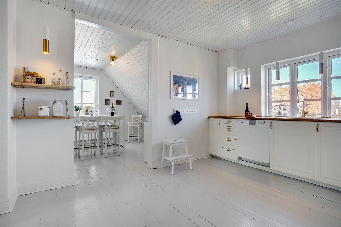 Helle Wohnung in großem Skagenhaus, gegenüber der Kirche von Skagen gelegen, nicht weit vom Zentrum, Hafen und Strand entfernt. Zum Haus gehört ein gemeinsamer Garten mit Gartenmöbeln und überdachte Terrasse.