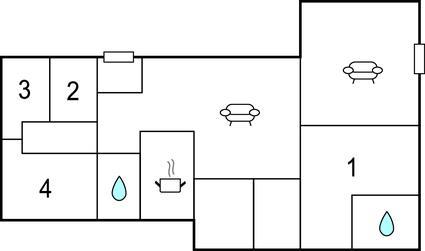Das Ferienhaus ist mit vier guten Schlafzimmern und zwei Bädern ausgestattet. Im offenen Wohnzimmer mit großen Fensterfronten lässt es sich wunderbar am Kamin entspannen. Von hier gelangen Sie auf die Terrasse, die sich hinter dem Haus befindet. Genießen Sie hier die Sonne bei den Mahlzeiten des Tages. In einem Badezimmer befindet sich nur eine Handbrause in der Badewanne.