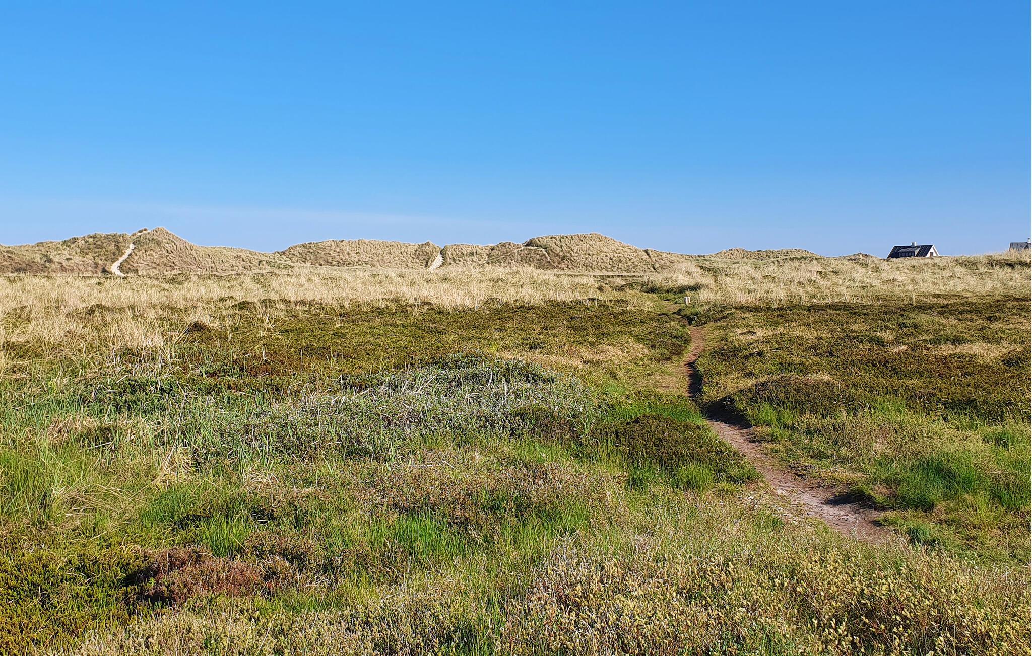 Sowohl aus dem Wohnzimmer als auch aus der Küche haben Sie einen direkten Blick auf die unberührte Dünenlandschaft und können sogar das Rauschen der Nordsee erahnen. Die reiche Tierwelt der Umgebung lässt sich hier aus nächster Nähe beobachten. Ein direkter Pfad führt zum Strand, ideal für ein erfrischendes Morgenbad. Zusätzlich stehen Ihnen eine Außendusche und großzügige Holzterrassen zur Verfügung, die ideale Voraussetzungen für gemütliche Stunden im Freien bieten.