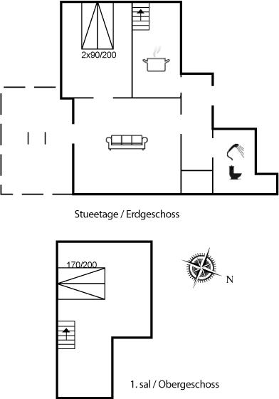 Die Schlafplätze verteilen sich auf 2 Schlafräume. 4 Schlafplätze in Doppelbetten.