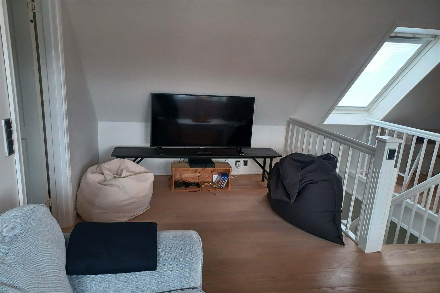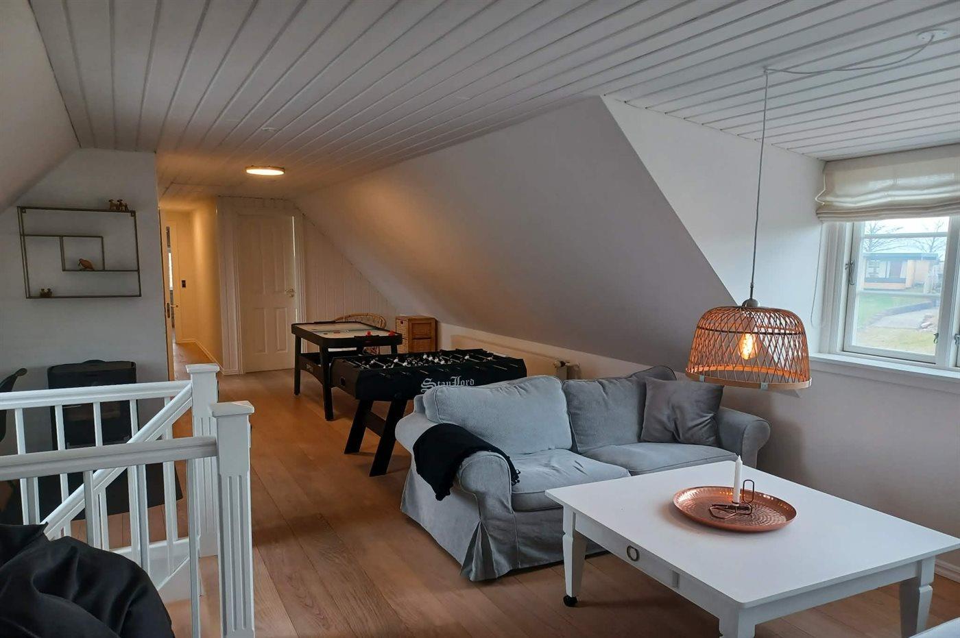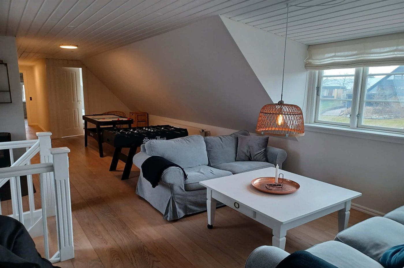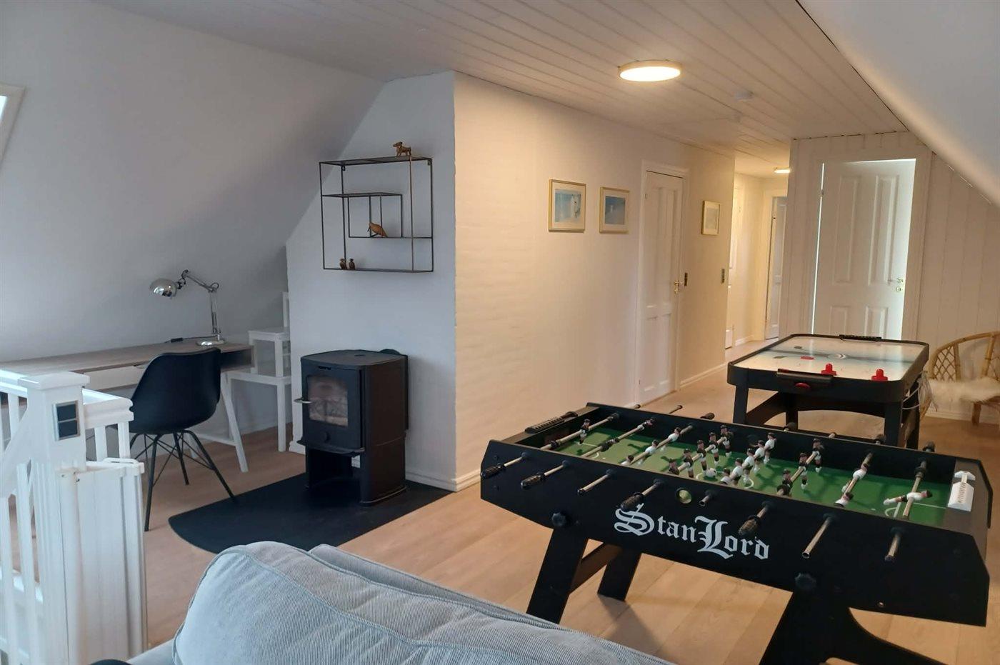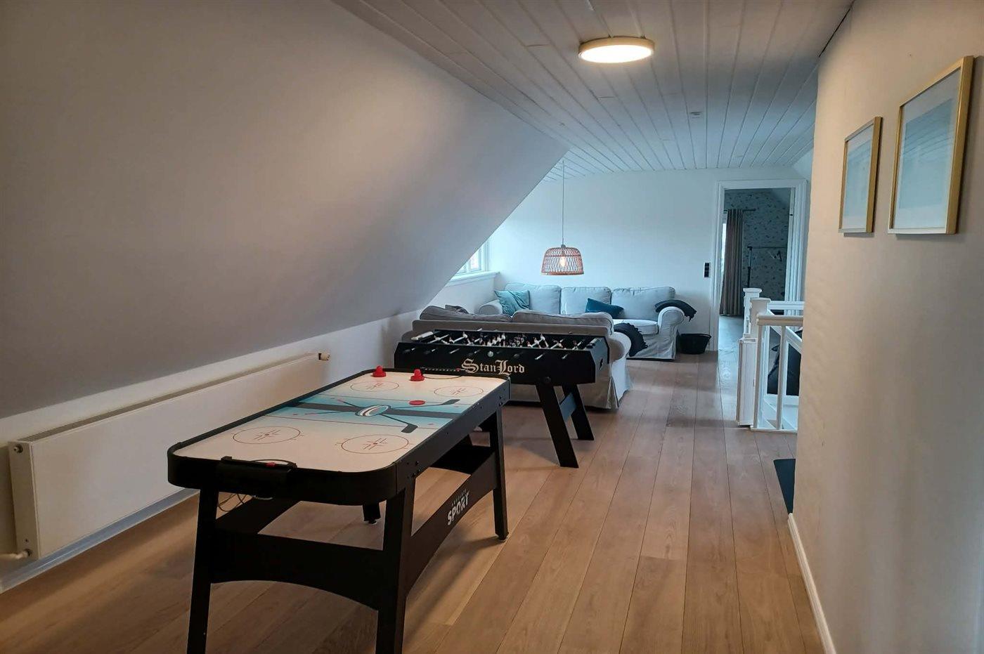 Im Obergeschoss gibt es einen Gamerraum mit einer PlayStation 4, Tischfußball und Airhockey.