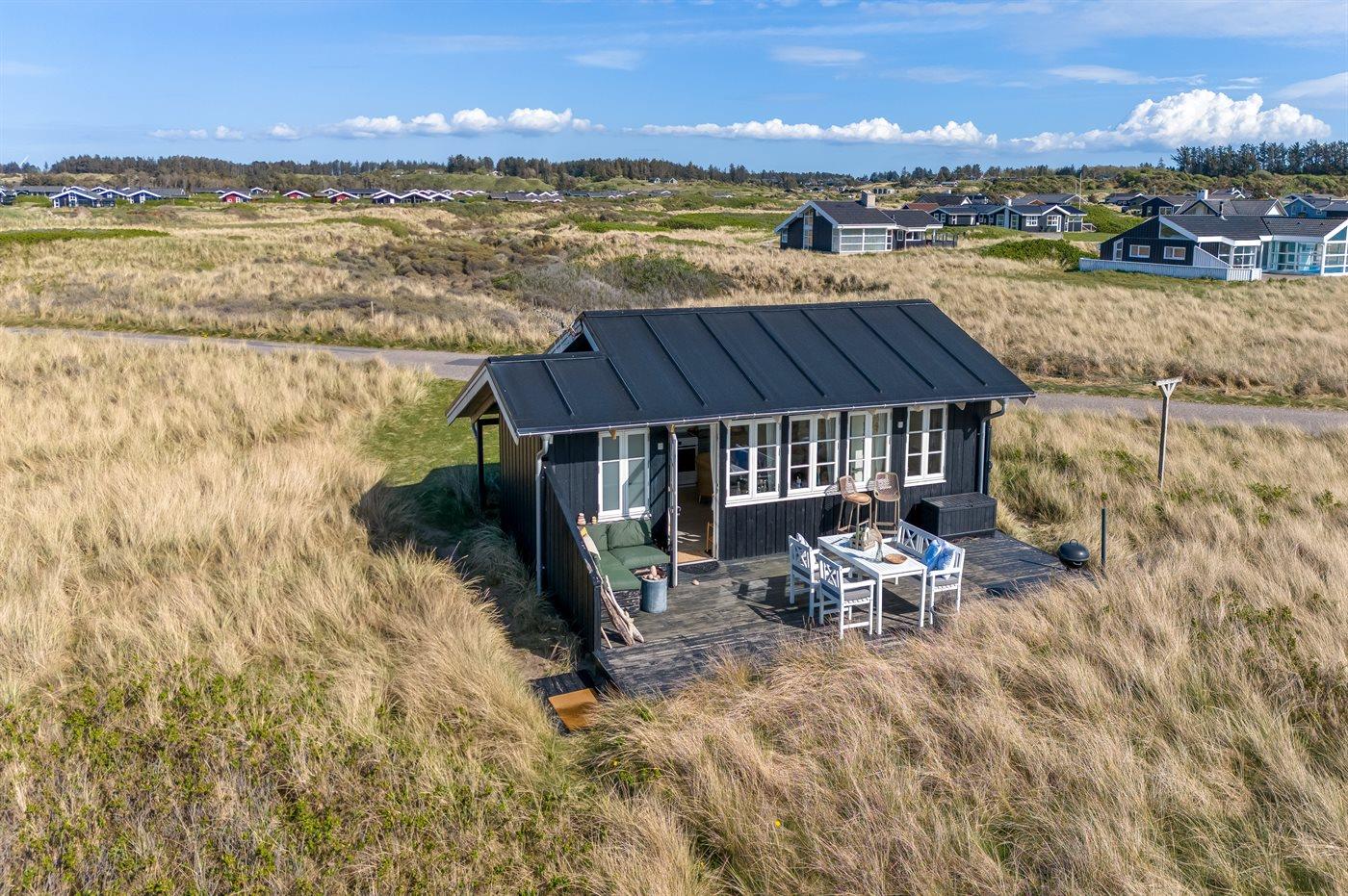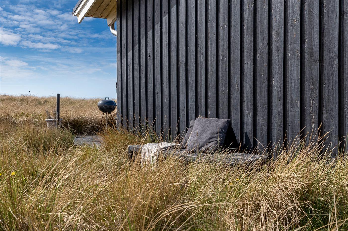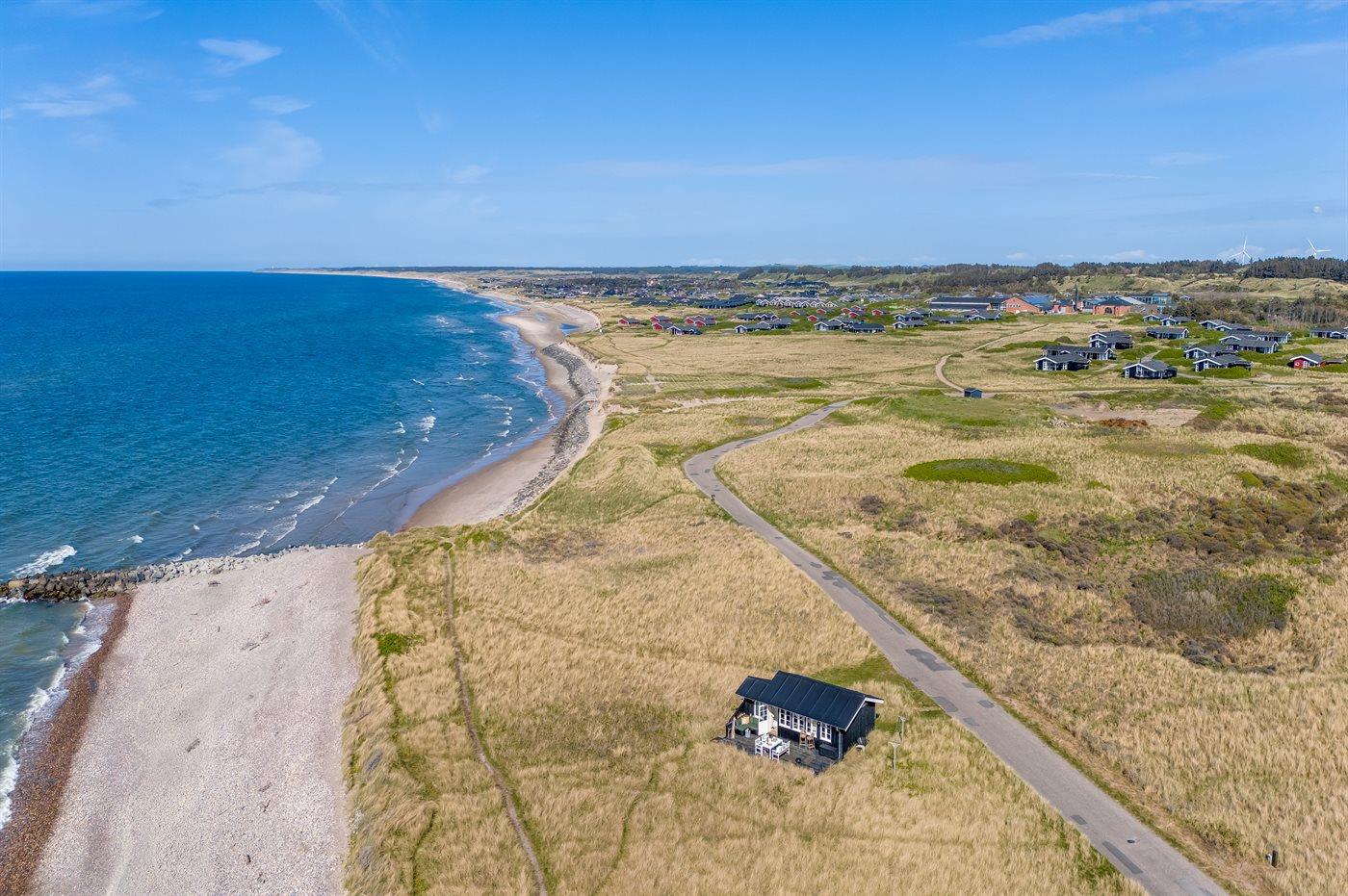 Die Ferienunterkunft liegt auf einem 3000 m² großen Dünengrundstück. Die Entfernung zum Meer beträgt 20 m. Die nächste Einkaufsmöglichkeit liegt 500 m entfernt. Es steht ein 30 m² Terrassenareal zur Verfügung. Parkplatz auf dem Grundstück.