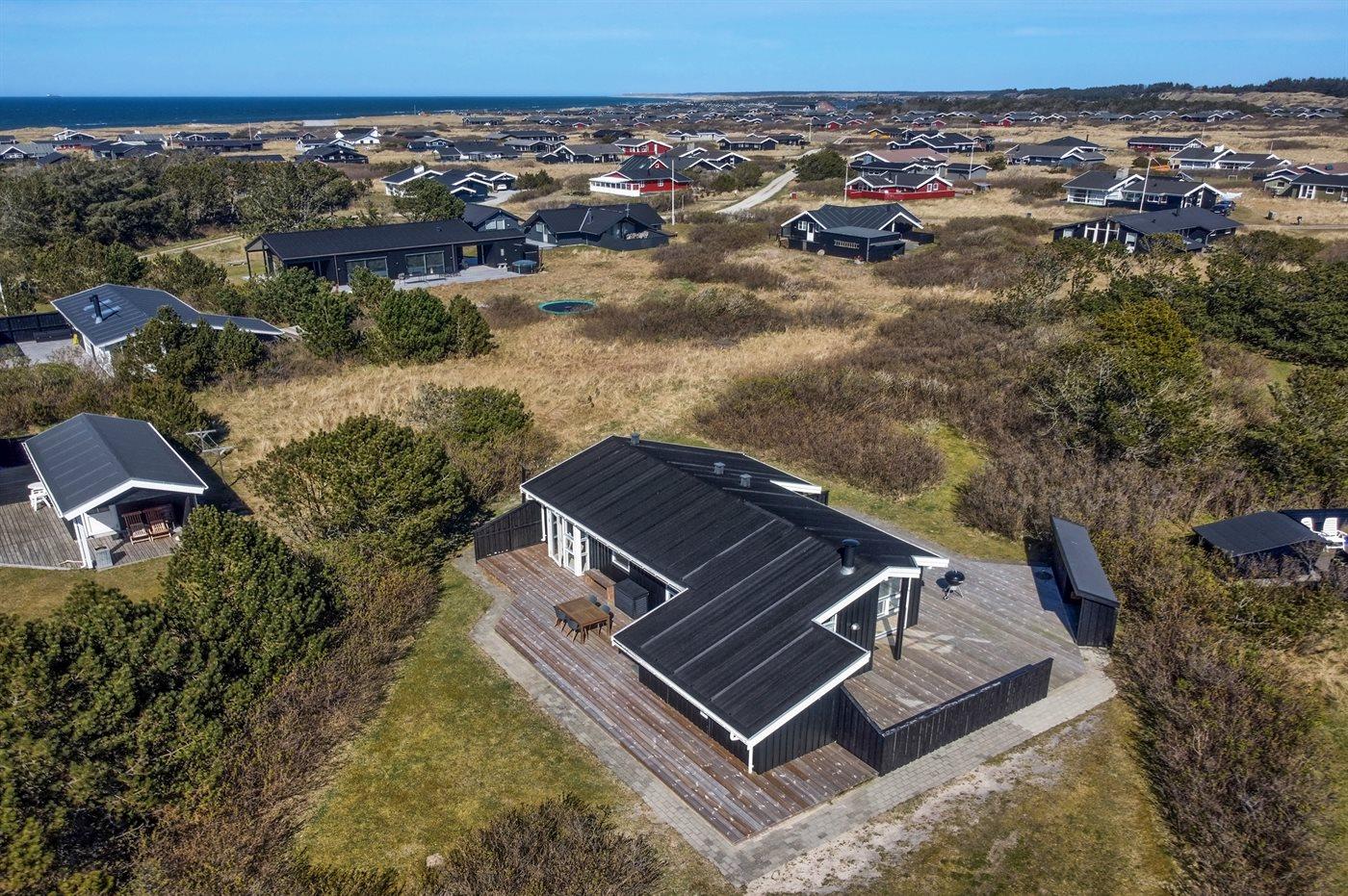 Schönes und gut eingerichtetes Ferienhaus mit guten, geschlossenen Terrassen auf beiden Seiten des Hauses. Das Ferienhaus liegt in einem naturschönen Gebiet in der Nähe vom Meer und von einem Aktivitätscenter mit u.a. Badeland, Wellness und Spielplatz.