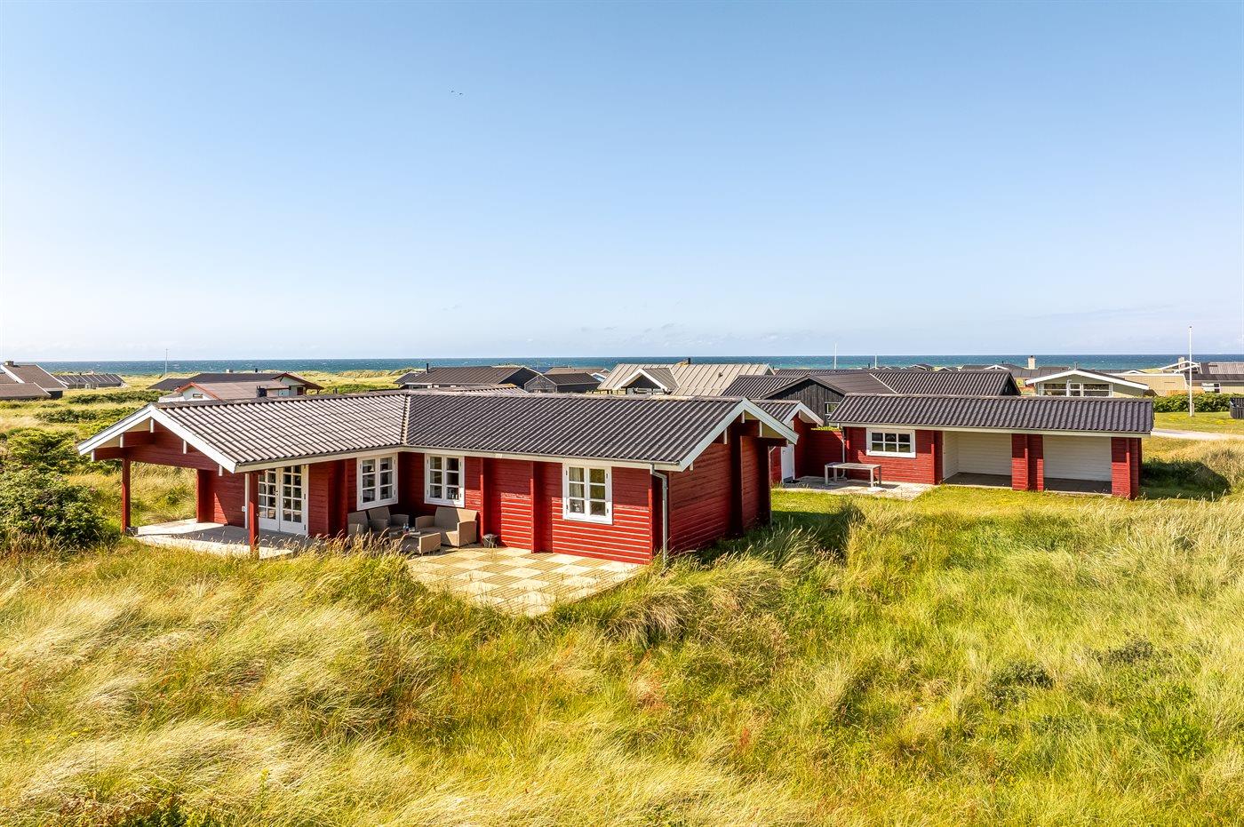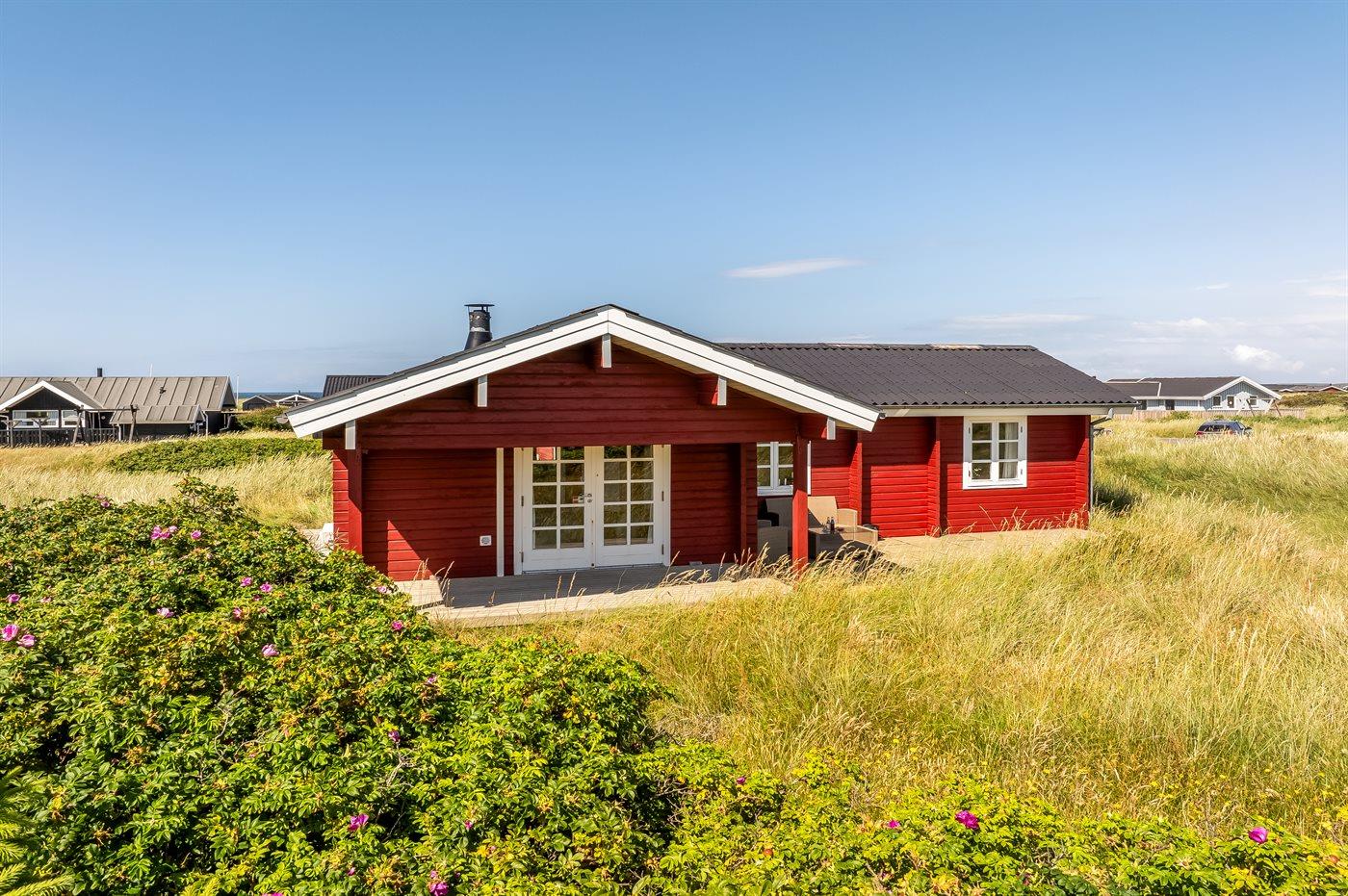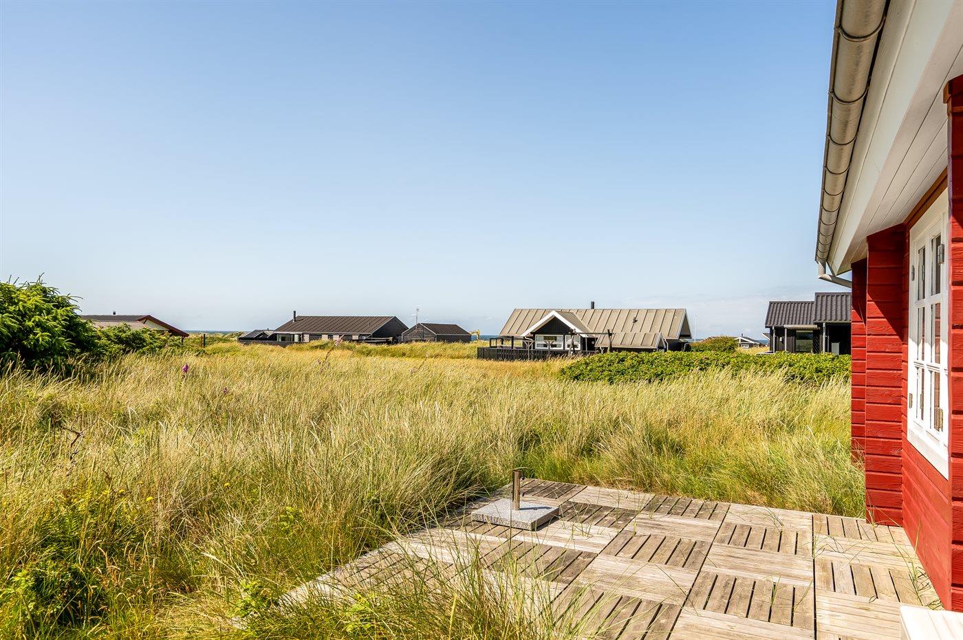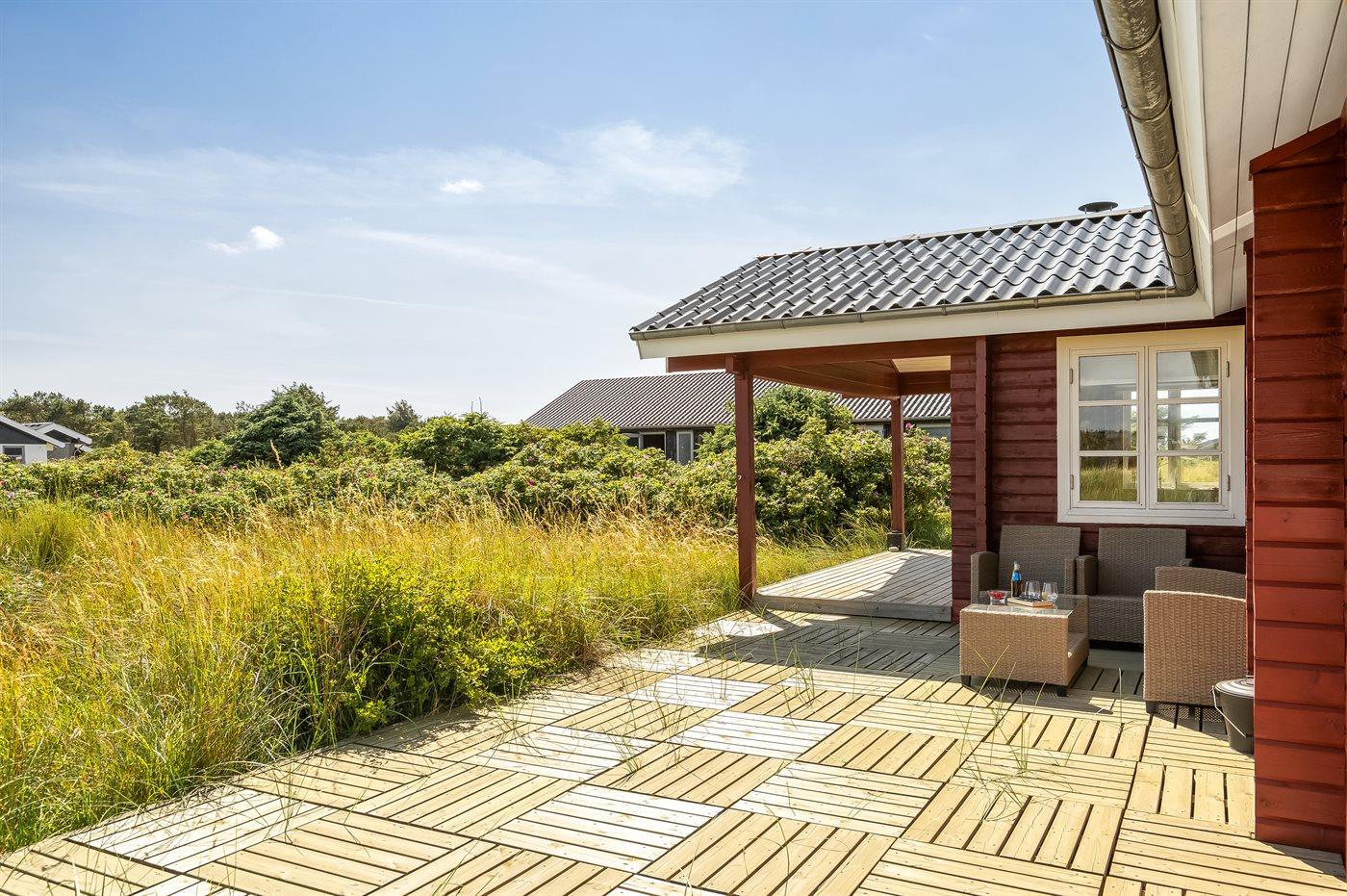 Ein gemütliches, gut gelegenes Ferienhaus im Feriengebiet Skallerup Klit mit Meerblick sowohl vom Haus als auch vom Grundstück. Das Haus liegt auf einem 1314 m² großen und schönen Naturgrundstück mit mehreren gut gelegenen Terrassen, so dass immer die Möglichkeit besteht, einen vor dem Wind geschützten Platz zu finden. Ein Teil der Terrasse ist überdacht. Es ist ein Grill vorhanden.