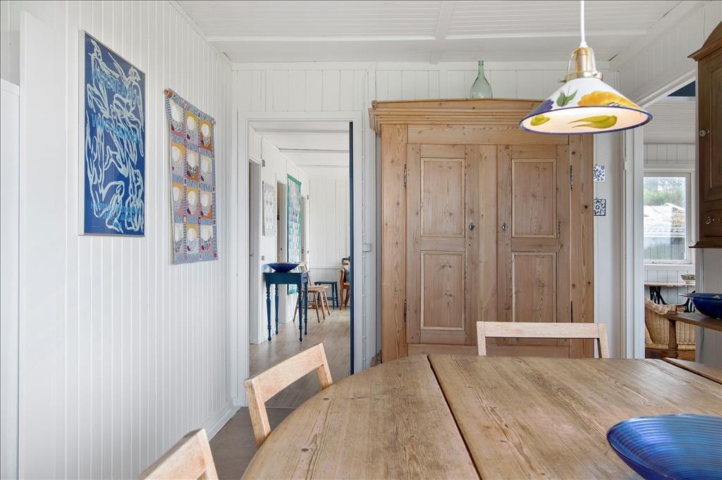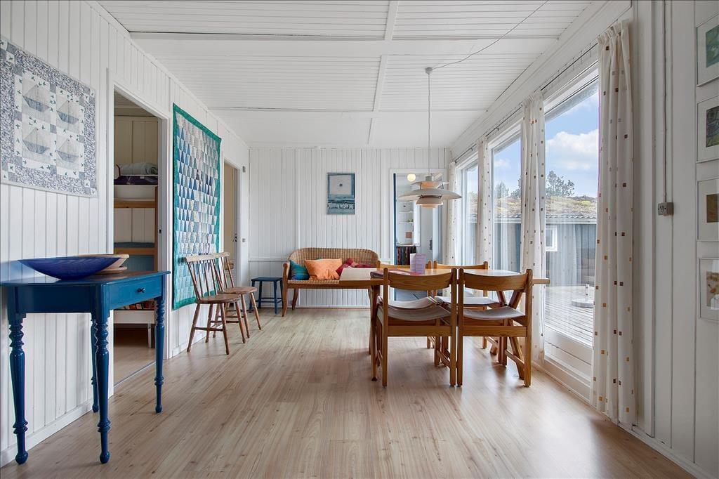 Ein großes und geräumiges Ferienhaus mit einer charmanten Einrichtung mit einer Mischung aus modernen und antiken Möbeln. Das Haus liegt in Skallerup Klit, einem Gebiet mit einer wunderbaren Natur und einem schönen Badestrand.