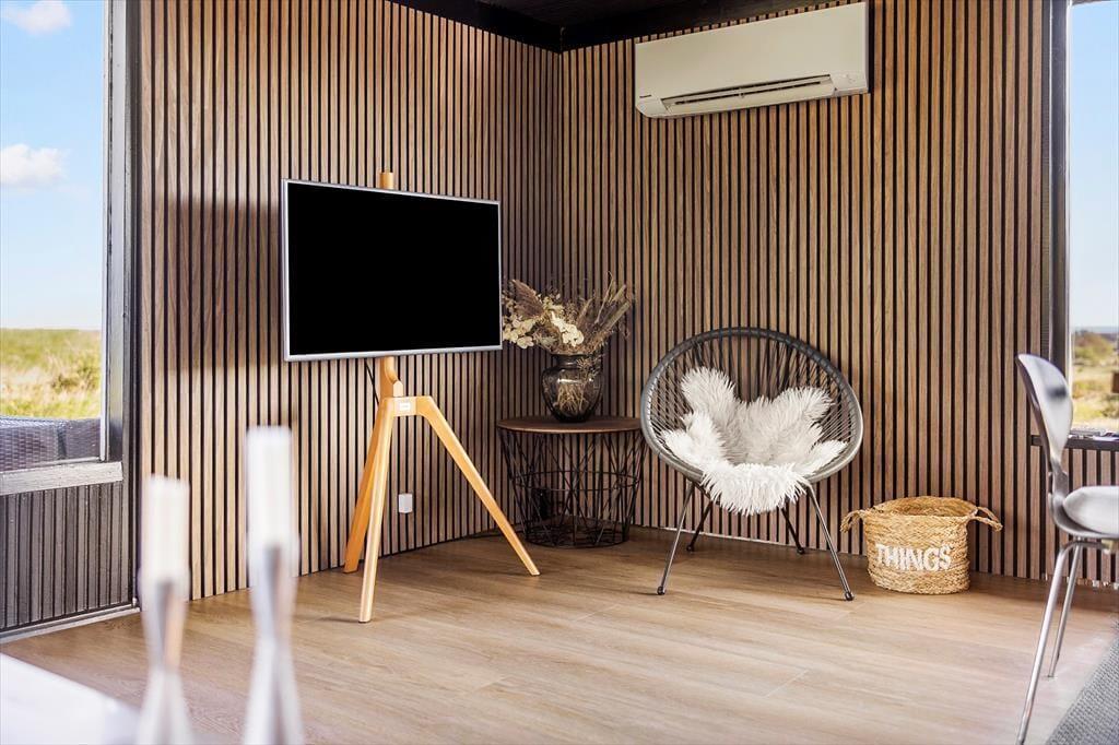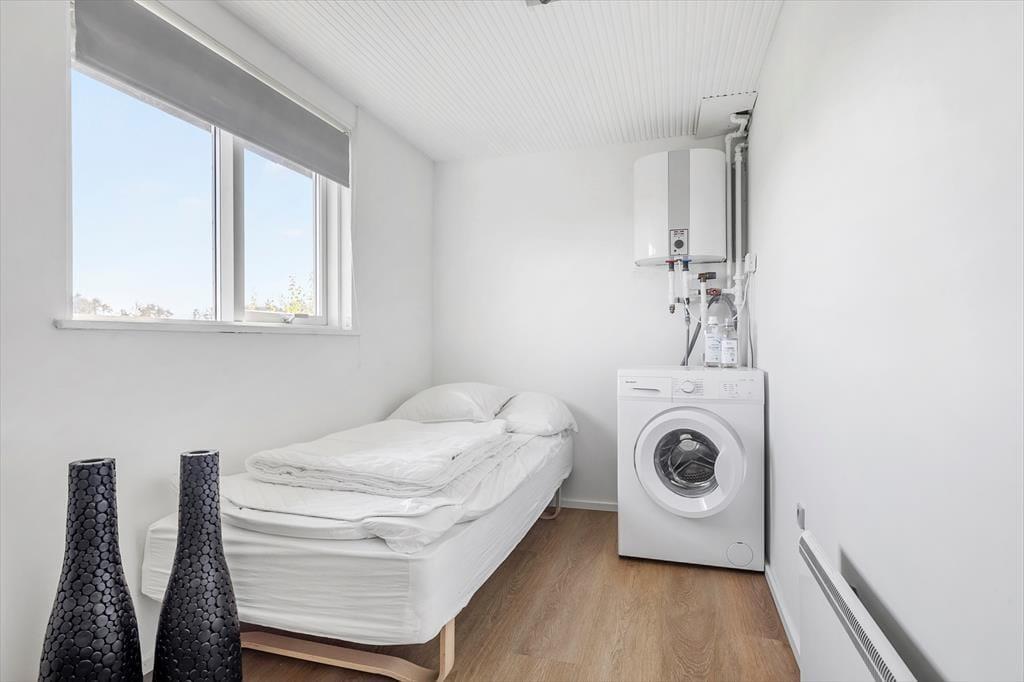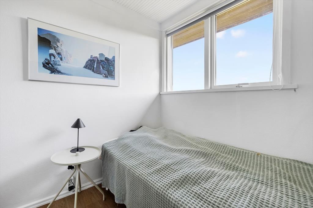 Das Ferienhaus steht hier seit 1965, und obwohl es laufend modernisiert wurde, sieht man ihm die jahrelange Nutzung an. Dennoch ist klar zu erkennen, dass sich die heutigen Eigentümer liebevoll darum kümmern – die Einrichtung ist modern und geschmackvoll. Große Fensterfronten tragen ebenfalls zum luftigen Raumgefühl bei, denn im Wohnbereich fällt das Licht aus drei Himmelsrichtungen ein – gleichzeitig eröffnet sich ein fantastischer Meerblick, egal ob Sie es sich auf dem Sofa gemütlich machen, am Esstisch sitzen oder im offenen Küchenbereich kochen. Bei klarem Wetter reicht der Blick von Hirtshals Fyr bis Rubjerg Knude – und wenn draußen der Wind tost, können Sie den Kaminofen anheizen und die Wärme genießen, während Sie den Wellen in der Bucht von Skallerup zusehen.