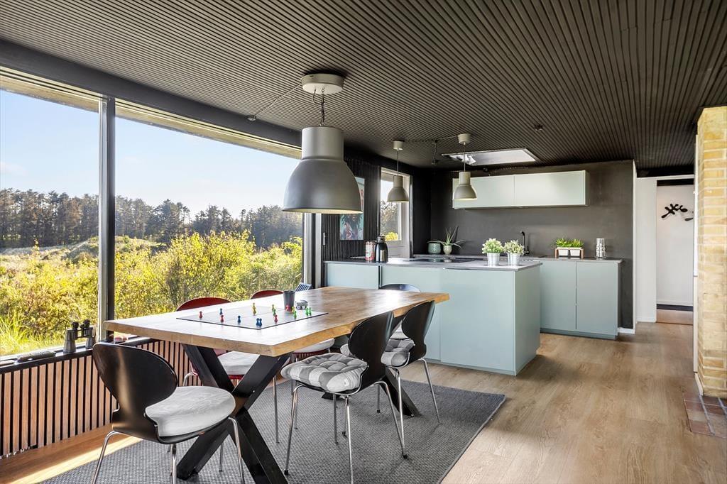 Dieses Ferienhaus genießt eine herrlich erhöhte Lage bei Skallerup Klit: Es liegt ungestört am Ende eines kleinen Weges, und vom Wohnzimmer sowie von der Terrasse aus können Sie über die wilde Küstenlandschaft und die Nordsee blicken.