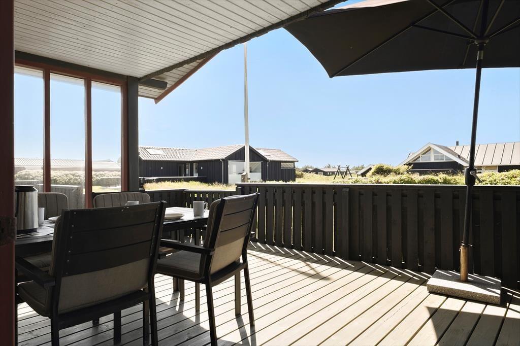 Wenn das gute Wetter Sie nach draußen lockt, haben sie mehrere schöne Orte zur Auswahl. Um das Haus herum sind mehrere Holzterrassen angelegt, sodass Sie zu jeder Tageszeit eine hyggeliges Sonnenplätzchen finden. Wenn Sie mehr Lust auf Schatten haben, gibt es auch mehrere überdachte Terrassenflächen. Alternativ können Sie die Sonnenstunden auch mit einer Runde Kubb/Wikingerschach oder beim Fußballspielen auf dem Rasen verbringen.