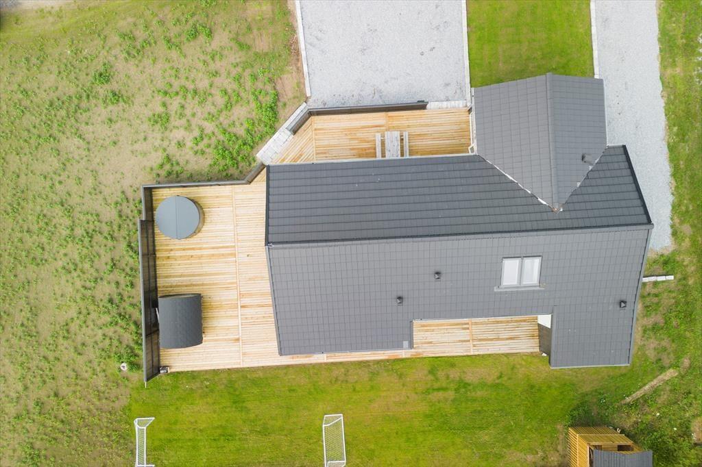 Auf dem 2.600 m² großen Naturgrundstück erholst du dich mit deinen Lieben in grünem, ruhigen Ambiente. Eine tolle Holzterrasse umgibt drei Seiten des Hauses, sodass du zu jeder Zeit einen perfekten Aufenthaltsplatz unter freiem Himmel oder unter dem schattenspendenden Halbdach findest. An kühlen Tagen wird es dich unwiderstehlich in die heiße Saunatonne und in den Outdoor-Whirlpool ziehen, die beide auf der Südterrasse bereitstehen. Ein Bad im Whirlpool ist besonders am Abend fantastisch - wenn die Sonne untergegangen ist und du auf den dunklen Himmel mit funkelnden Sternen blickst.