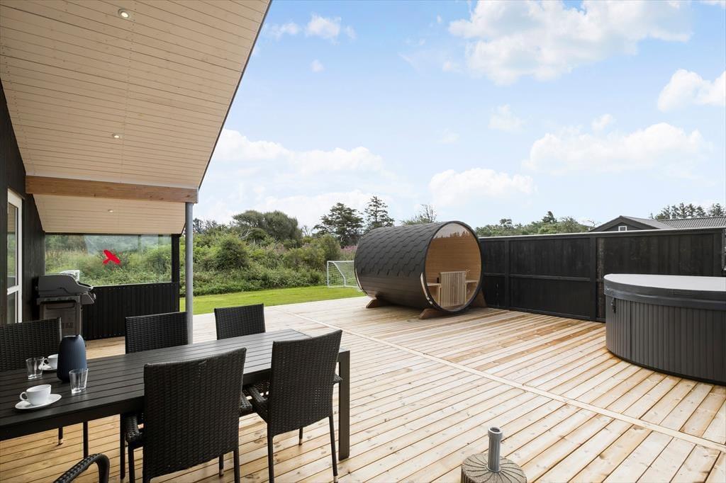 Träumst du davon, deinen nächsten Urlaub in einem komfortablen Ferienhaus inmitten friedvoller, landschaftlich schöner Umgebung zu verbringen? Dann hast du in diesem großen, tollen Mietobjekt, das dich in der Sackgasse Nørre Knoldvej in Skallerup Klit begrüßt, dein Traumferienhaus gefunden! Nicht nur das Haus selber, sondern auch die Saunatonne, der Outdoor-Whirlpool und die schöne Aussicht mit Meerblick aus dem Wohnzimmer sorgen für bestmögliche Erholung und Entspannung.