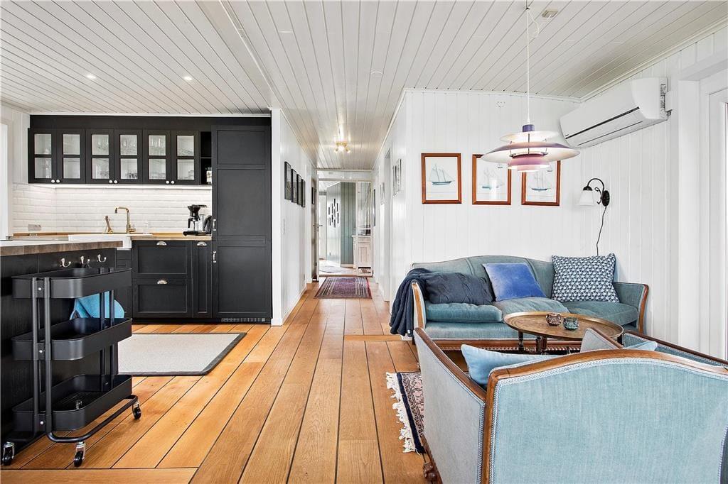 Dieses große Ferienhaus ist in einem maritimen und romantischen Stil eingerichet. Darüber hinaus wurde an viele kleine Details geachtet. Das Haus ist hell und geräumig mit großen Schlafzimmern mit ausreichend Aufbewahrungsmöglichkeiten sowie zwei Badezimmern mit Duschen ausgestattet. Das Ferienhaus verfügt über mehrere Wohnbereiche, u. a. ein Wohnzimmer mit einem schönen Kamin und das andere mit Essbereich sowie mehreren guten bequemen Sesseln. Der Ideale Ausgangspunkt für Urlaubsgäste, die sich verwöhnen lassen möchten!