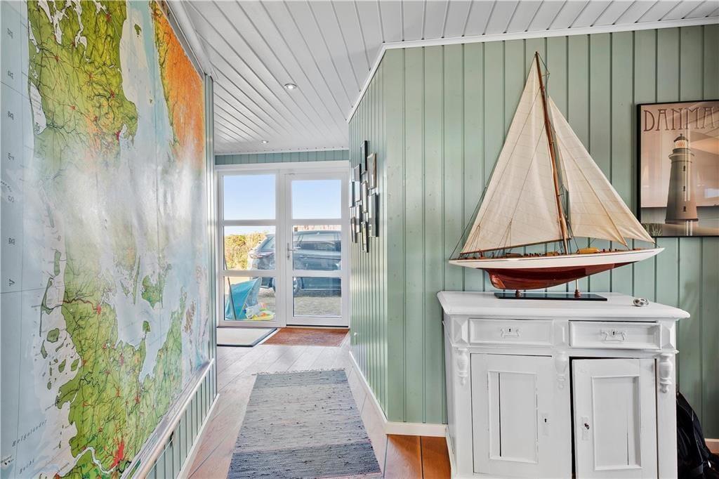 Dieses schöne Ferienhaus liegt in Skallerup Klit in unmittelbarer Nähe zum Strand. Innerhalb von fünf Minuten zu Fuß erreichen Sie Skallerup Seaside Resort u. a. mit Wellness und Römischem Bad. Südlich vom Ferienhaus liegt der malerische Ferienort Lønstrup mit Galerien, Glasbläsereien und guten Shoppingmöglichkeiten. Außerdem können Sie auch die große Wanderdüne “Rubjerg Knude” besteigen und von der Dünenkuppe den Blick über die Jammerbucht schweifen lassen.