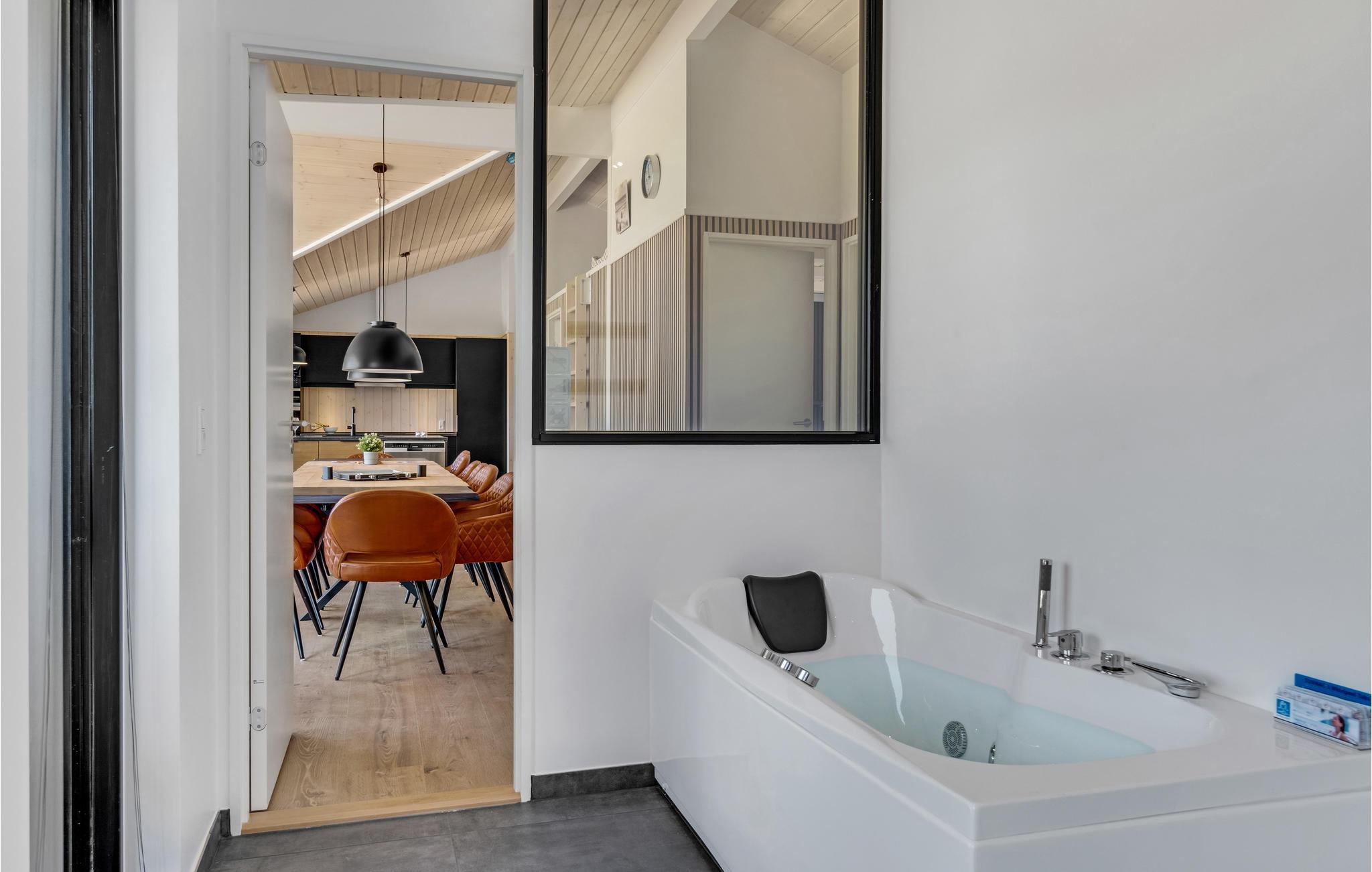 Es gibt schöne Badezimmer - eines mit Zugang zur Sauna, wodurch das Haus sehr gut für zwei Familien geeignet ist. Außerdem können Sie im separaten Whirlpool relaxen.