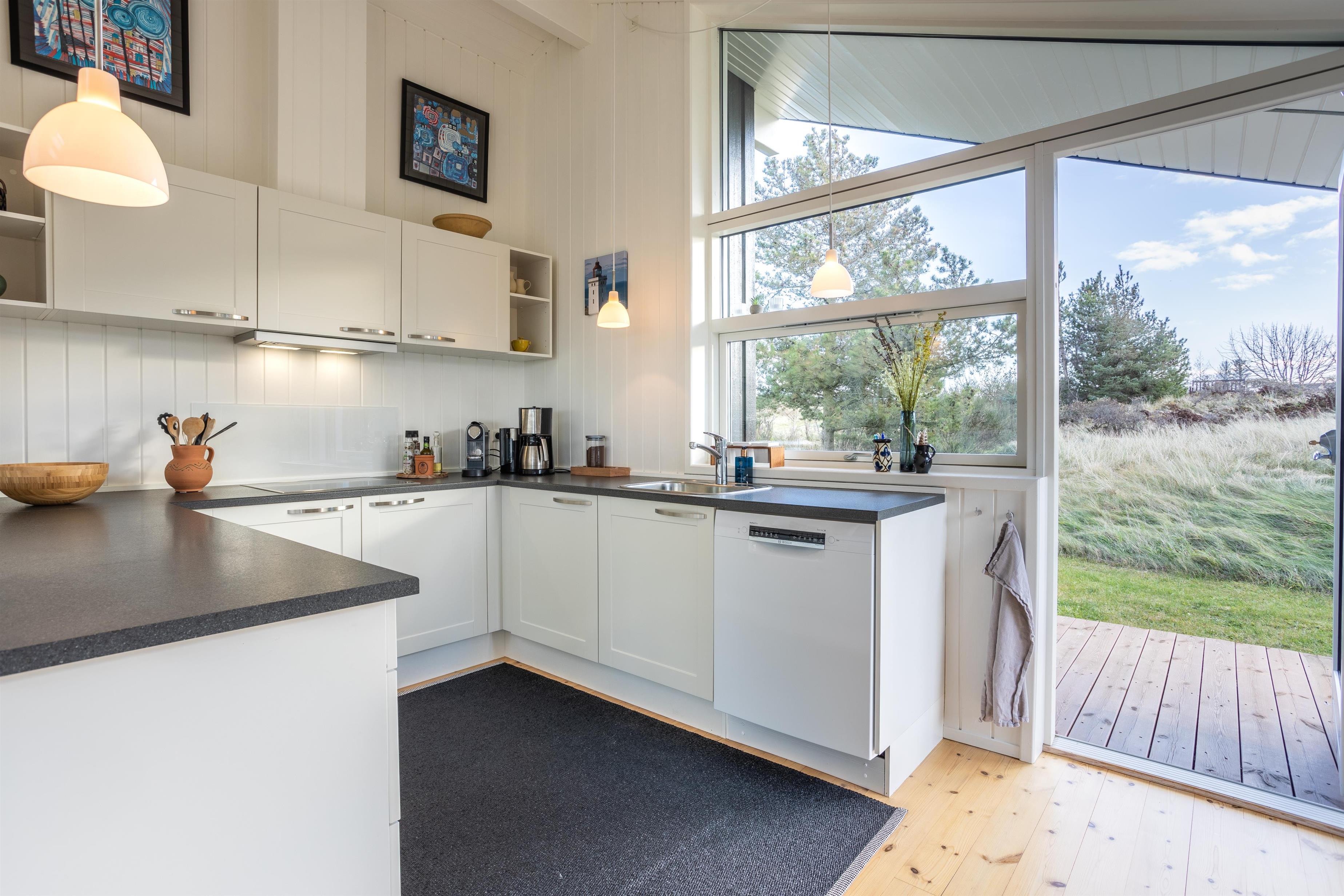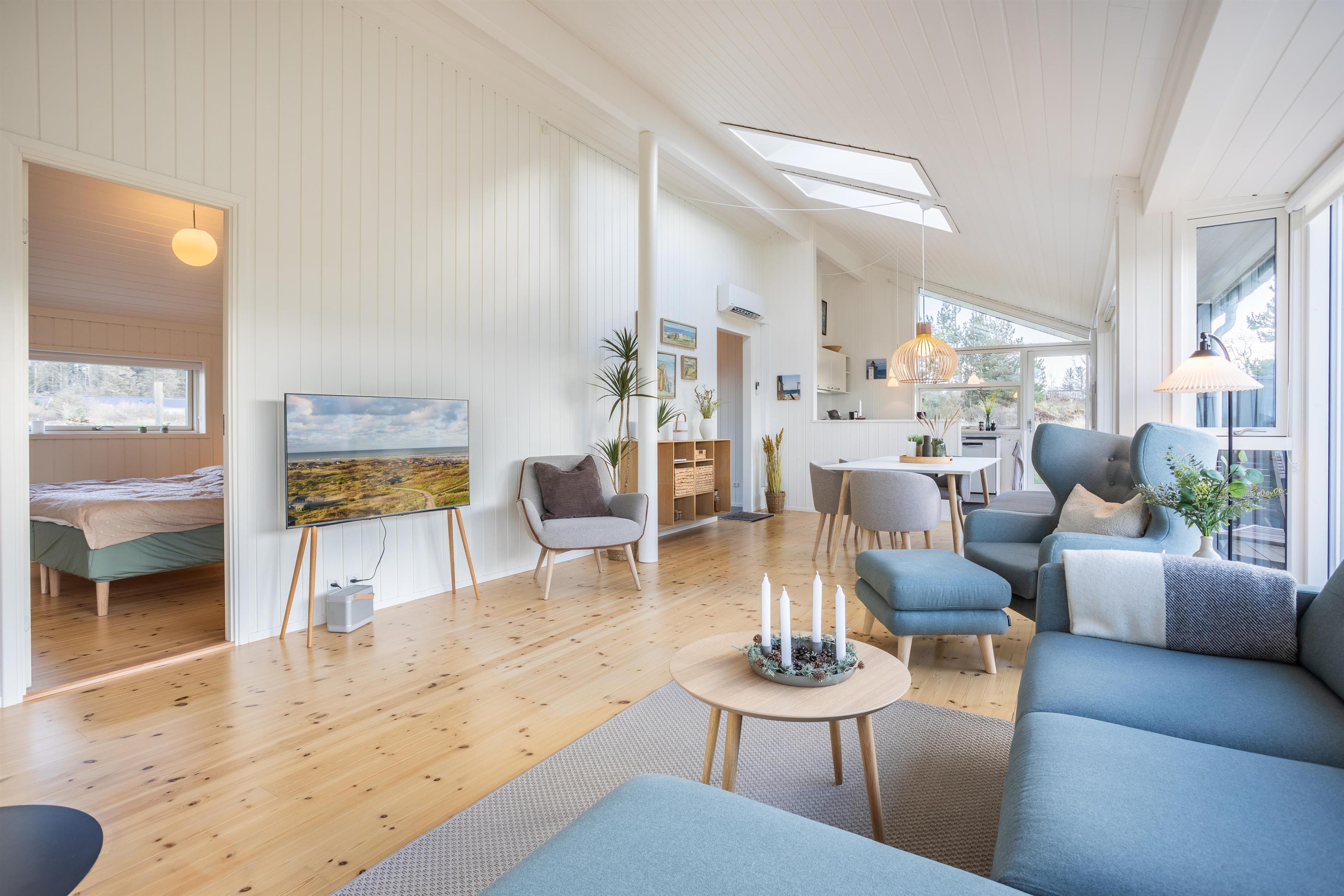 Atmen Sie tief ein und lassen Sie die Ruhe einkehren. In diesem Ferienhaus sind Sie eins mit der Natur, die das gesamte Haus umgibt. Das Haus befindet sich auf einem großen, ungestörten Naturgrundstück, und egal, wohin Sie schauen, Sie blicken auf die Natur. Von Wohnzimmer und Küche aus haben Sie zudem den schönsten Ausblick auf die rauschende Nordsee. Während Ihres Aufenthalts haben Sie viele Gelegenheiten, Fasane und Rehe zu beobachten, die das große Naturgrundstück erkunden. Vom Ferienhaus aus ist es nur ein kurzer Spaziergang zum Wasser und zum Skallerup Seaside Resort über Wanderwege.