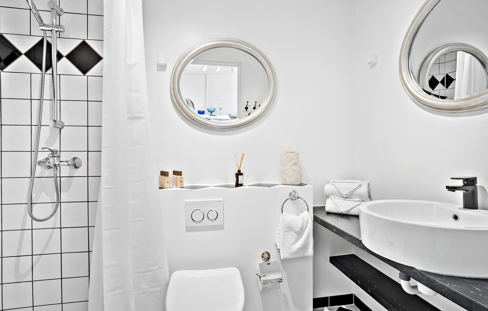 Badezimmer (nr. 1) - WC. Warmes und kaltes Wasser. Dusche