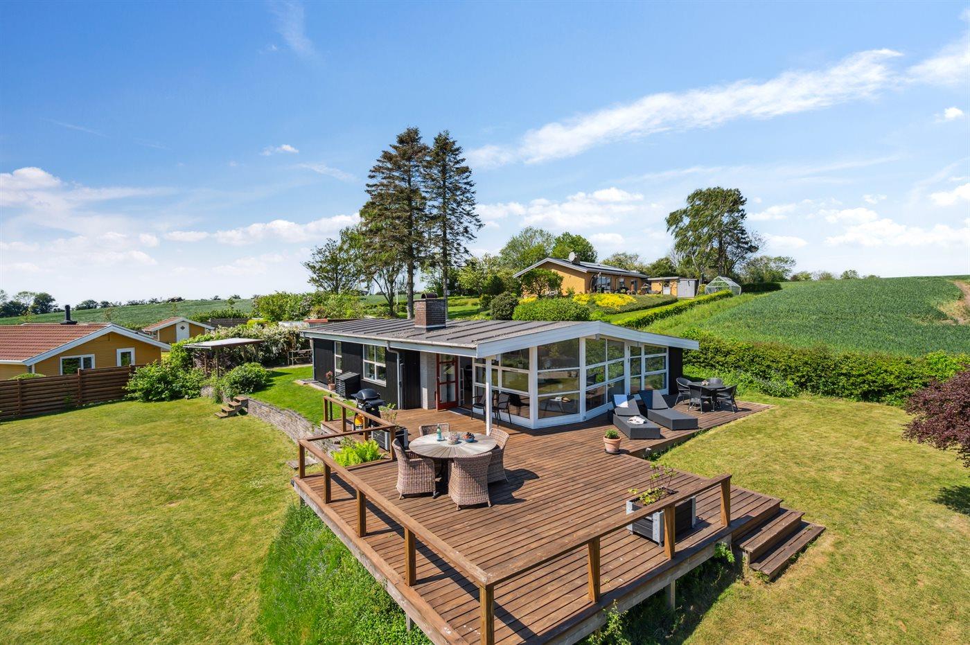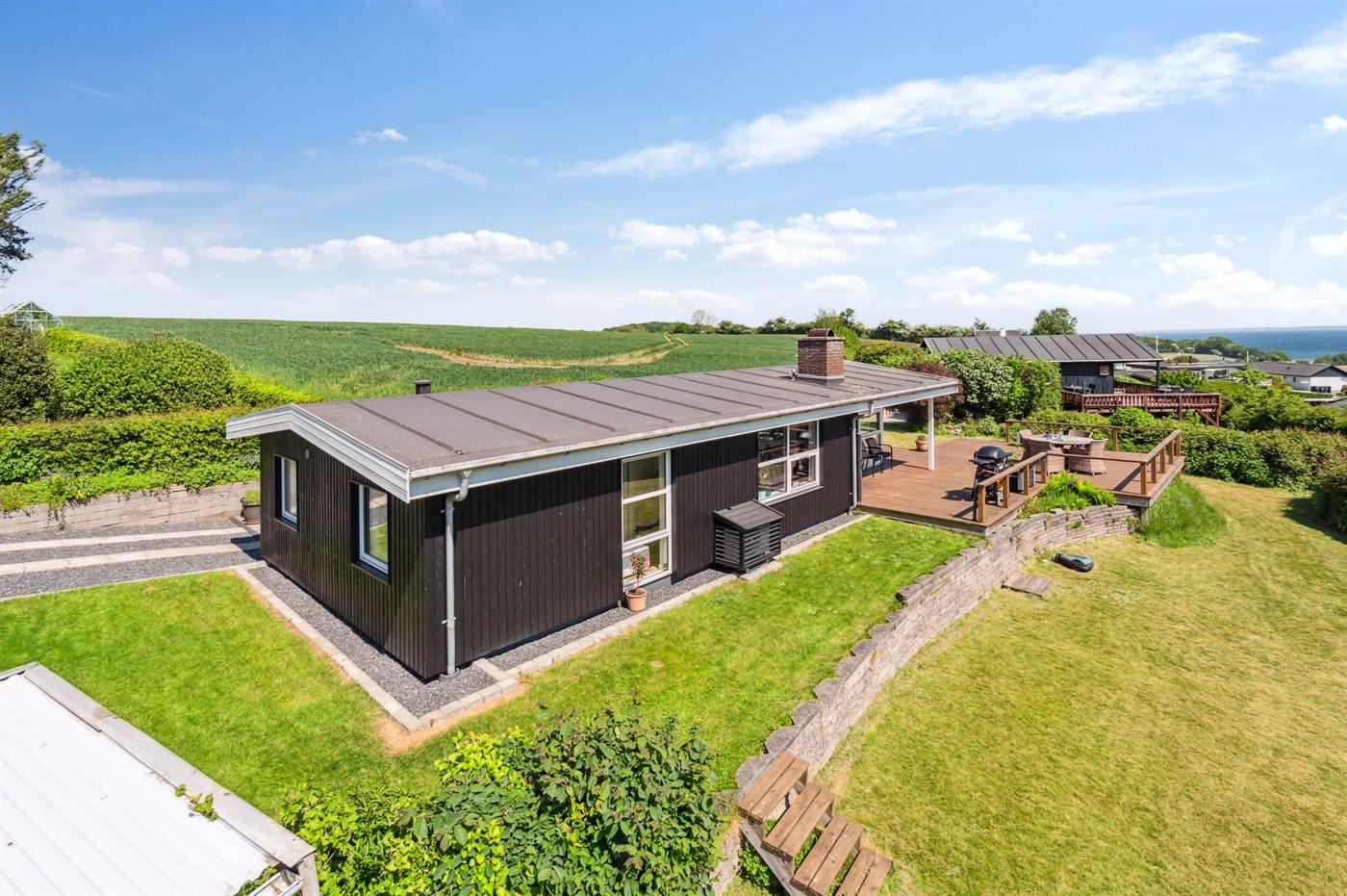 Modernes Ferienhaus mit Meerblick, Terrasse, Grill und Elektroauto-Ladestation in Skarrev, Dänemark.