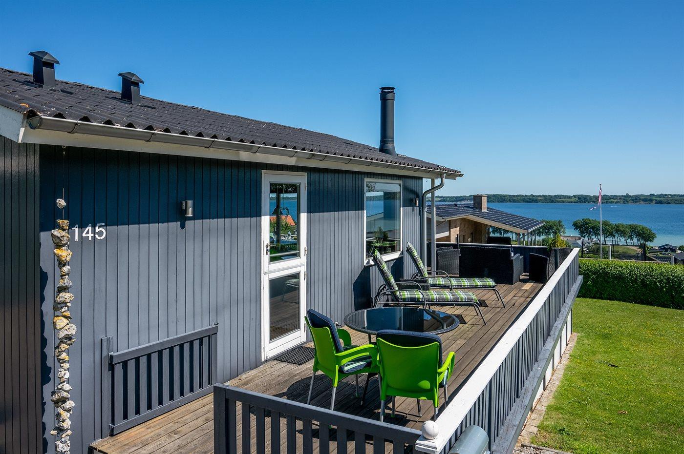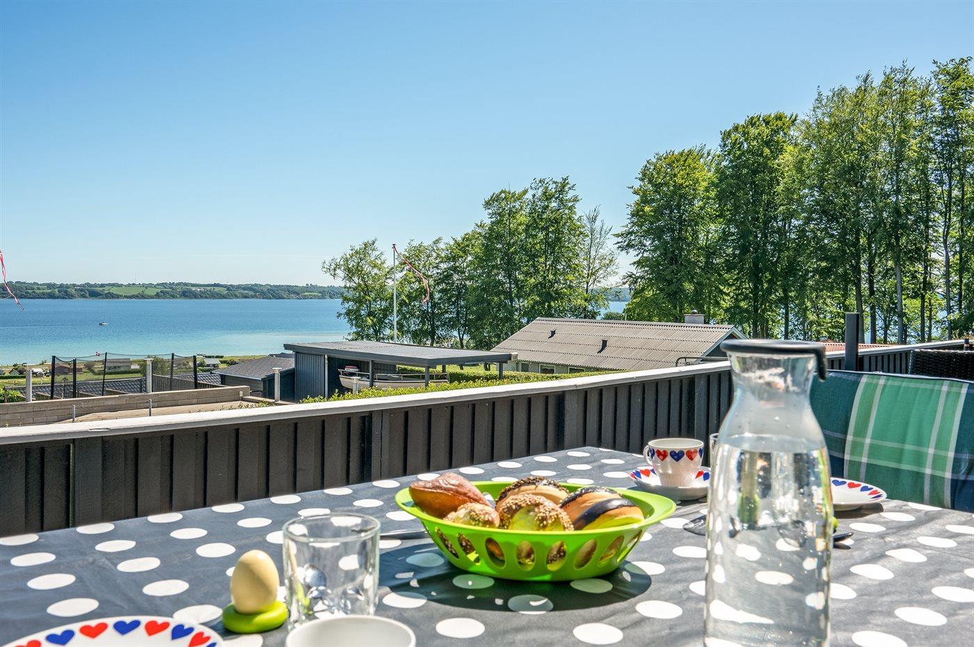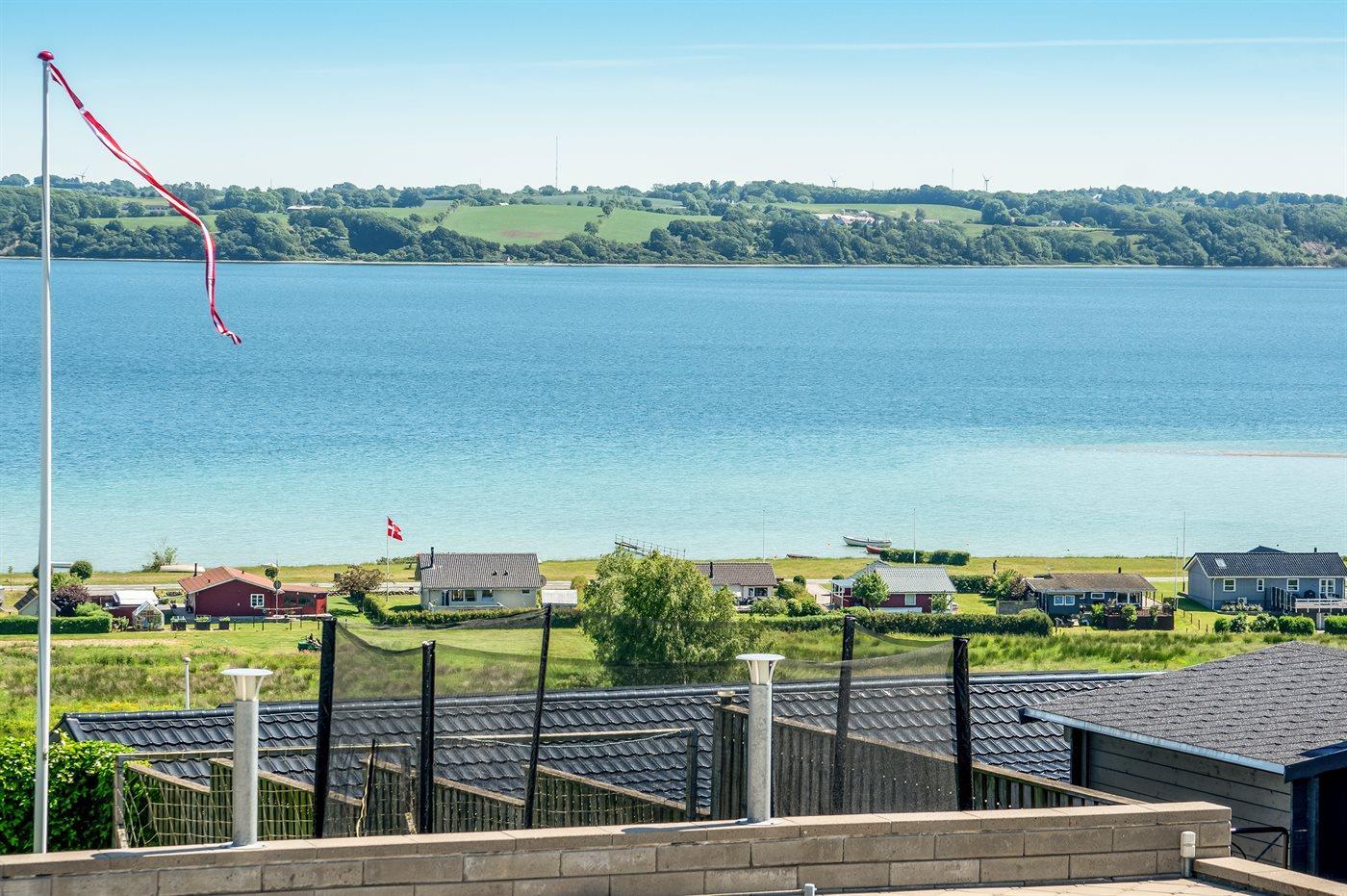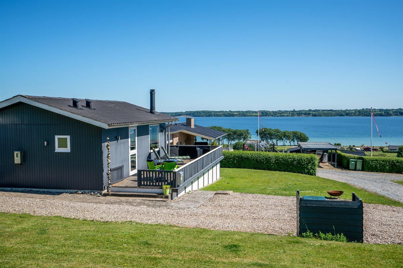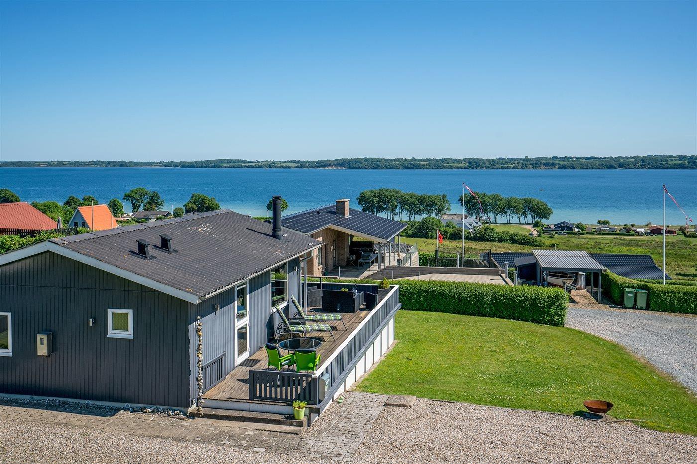 Gemütliches Ferienhaus mit Fjordblick, Terrasse und Kaminofen in Aabenraa, Dänemark.