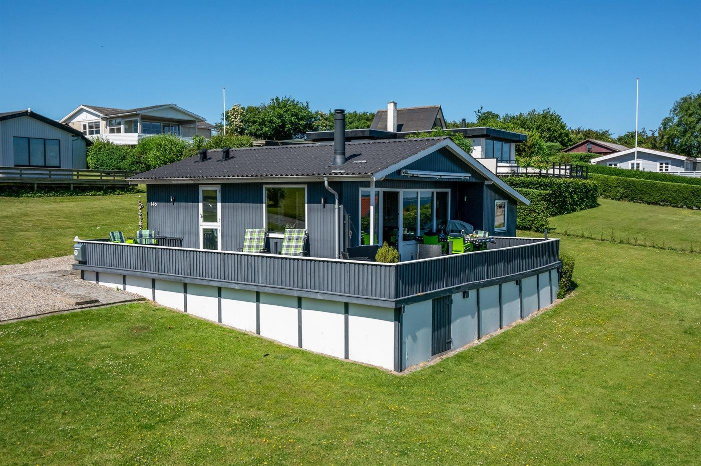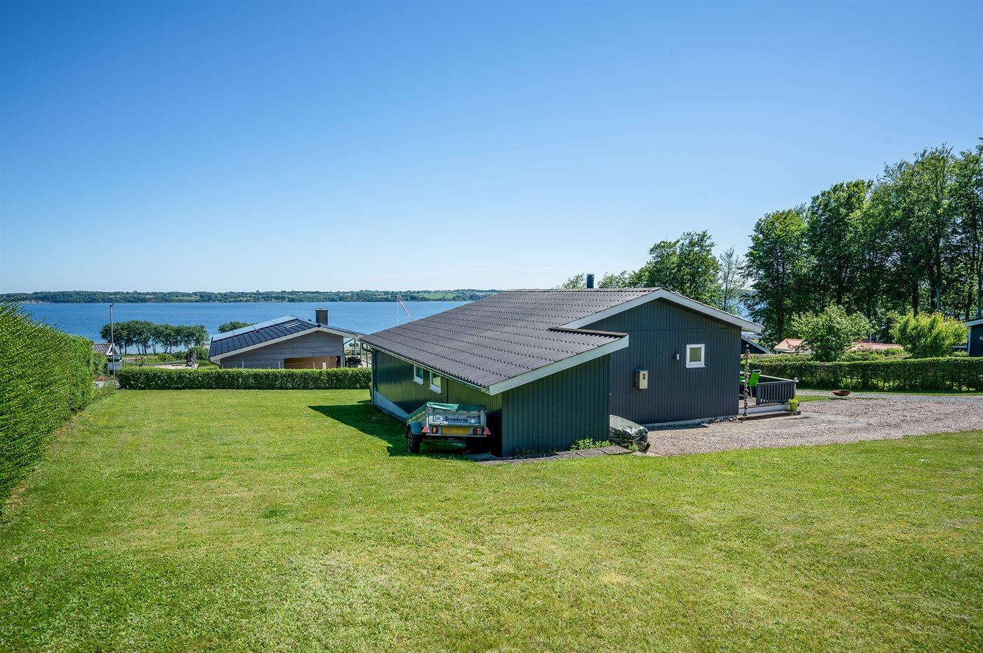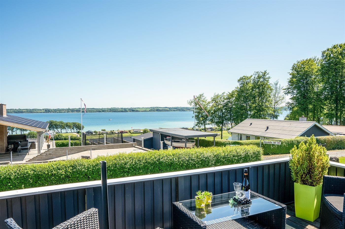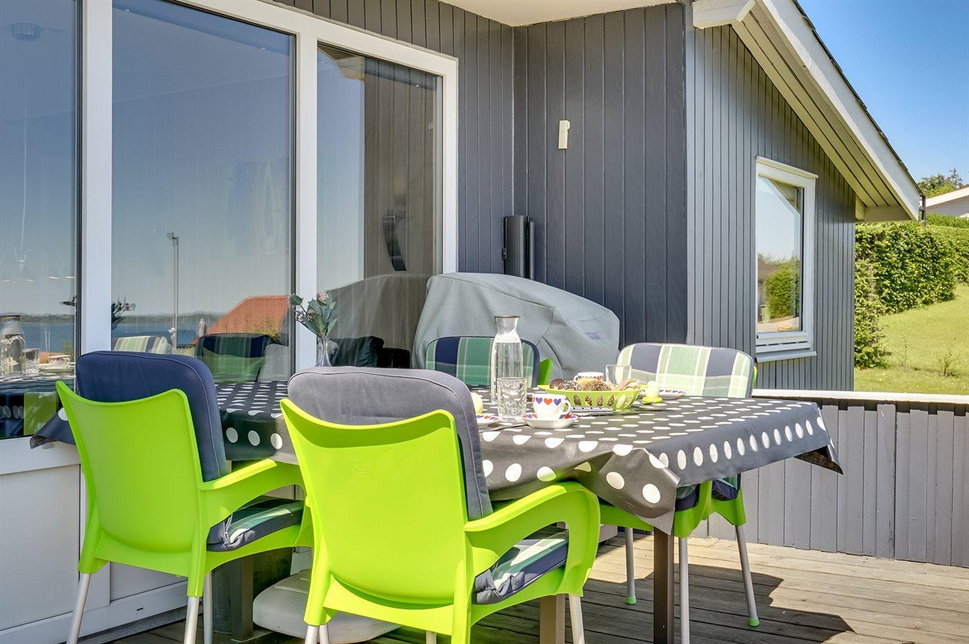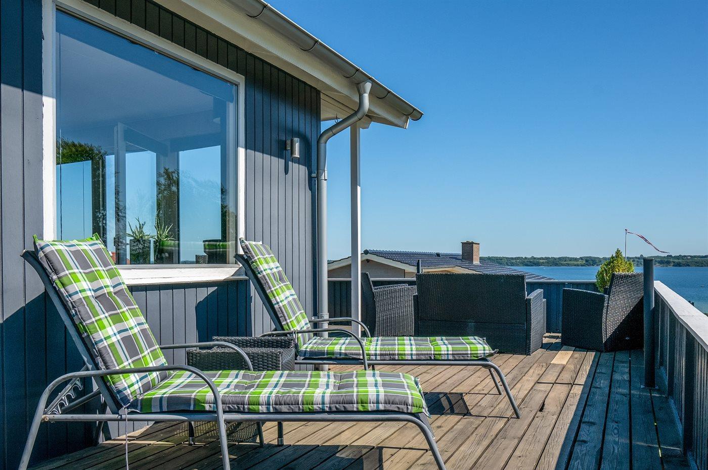 Gemütliches Ferienhaus mit Fjordblick, Terrasse und Kaminofen in Aabenraa, Dänemark.