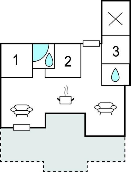 Badezimmer (nr. 2) - WC. Warmes und kaltes Wasser. Dusche
