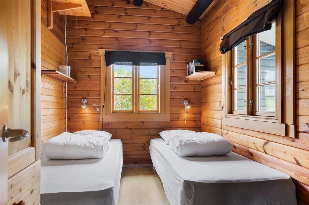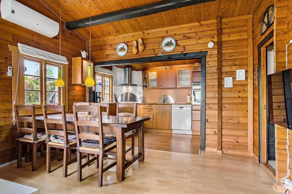 Im Inneren empfängt dich ein authentisches Holzhaus, in dem sich die warme und gemütliche Atmosphäre sofort ausbreitet. Die natürlichen Holzoberflächen und der klassische Ferienhausstil schaffen ein entspanntes Ambiente, das zu gemeinsamen Stunden und ruhigen Momenten einlädt. Große Fensterfronten lassen viel Tageslicht herein und holen die Natur direkt in die Wohnräume, sodass du vom Sofa aus den Blick über die Umgebung und den Fjord im Hintergrund genießen kannst. Hier ist Platz für ruhige Morgen mit einer Tasse Kaffee ebenso wie für lange Abende mit guten Gesprächen, während sich das Licht draußen langsam verändert. Das Ferienhaus wirkt persönlich und gepflegt, und die Einrichtung unterstützt das Gefühl, weit weg vom Alltag zu sein. Ein Ort, an dem du abschalten, dich zurücklehnen und ganz im Moment sein kannst – ganz gleich, ob dein Urlaub Entspannung oder gemeinsame Erlebnisse mit Familie und Freunden bereithält.
