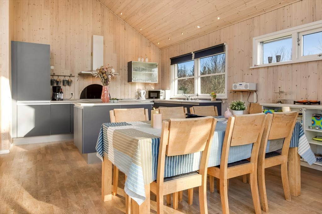 Sie wohnen nahezu am Ende des geschlossenen Ferienhausweges "Stikkelbærvej" und nur 100 Meter von einem Spielplatz entfernt. Beides macht dieses Haus zu einem wunderbar kinderfreundlichen Fleckchen für einen Urlaub. Insgesamt ist das Gebiet am Skaven Strand eine schöne Urlaubsdestination für Familien mit Kindern, da es hier angenehm beschaulich und ruhig zugeht. Gleichzeitig wohnen Sie in der Nähe eines Minigolfplatzes und ein paar Lokalitäten, die im stimmungsvollen, gemütlichen Hafen von Skaven darauf warten, Sie kulinarisch verwöhnen zu dürfen. Selbstverständlich lockt auch der Fjordstrand, an dem Sie mit Ihrer Familie nicht nur gut baden, sondern auch wunderbar surfen oder mit Ihrem SUP-Board in See stechen können. In dieser Gegend bieten sich Ihnen beste Bedingungen für einen aktiven Urlaub, bei dem Sie stets die ansprechende Natur ringsum genießen werden - ganz gleich, ob Sie angeln, surfen, wandern, mit dem Fahrrad fahren oder auch einfach nur an einem schönen Fleckchen sitzen und die herrliche Aussicht über den Ringkøbing Fjord genießen möchten.