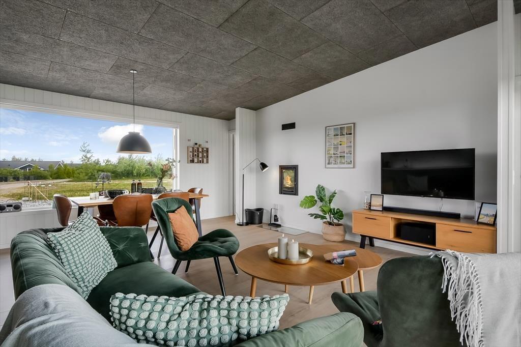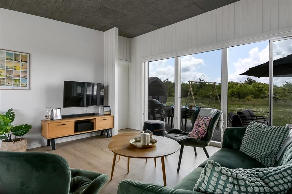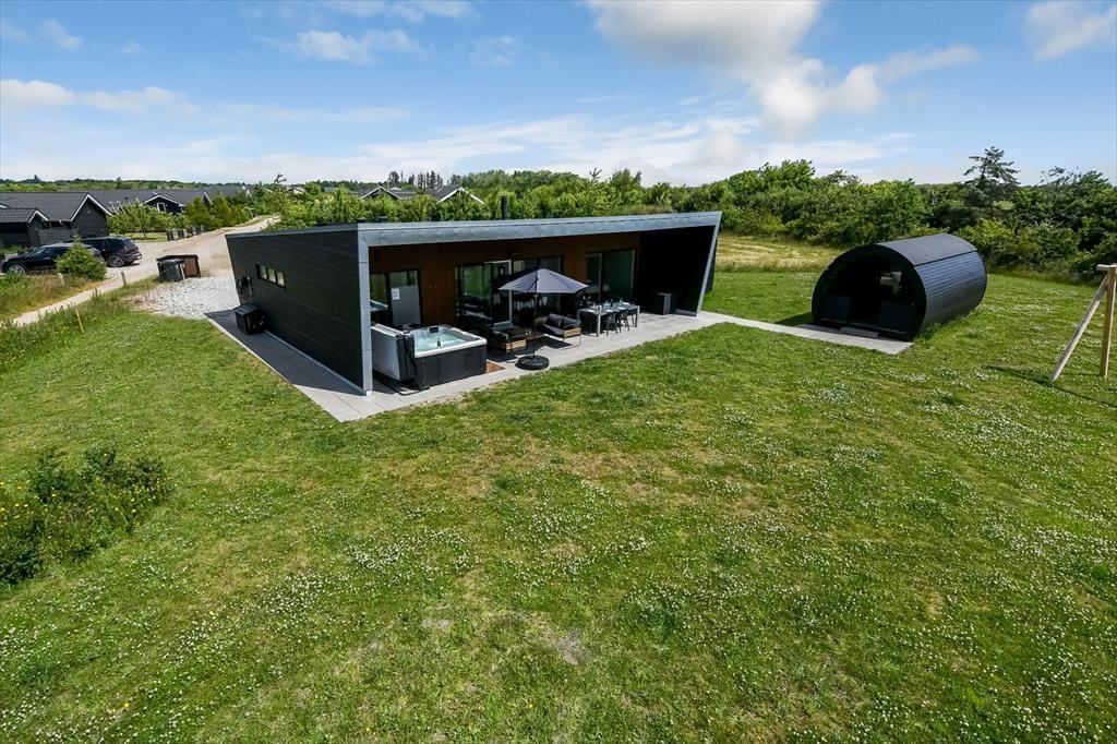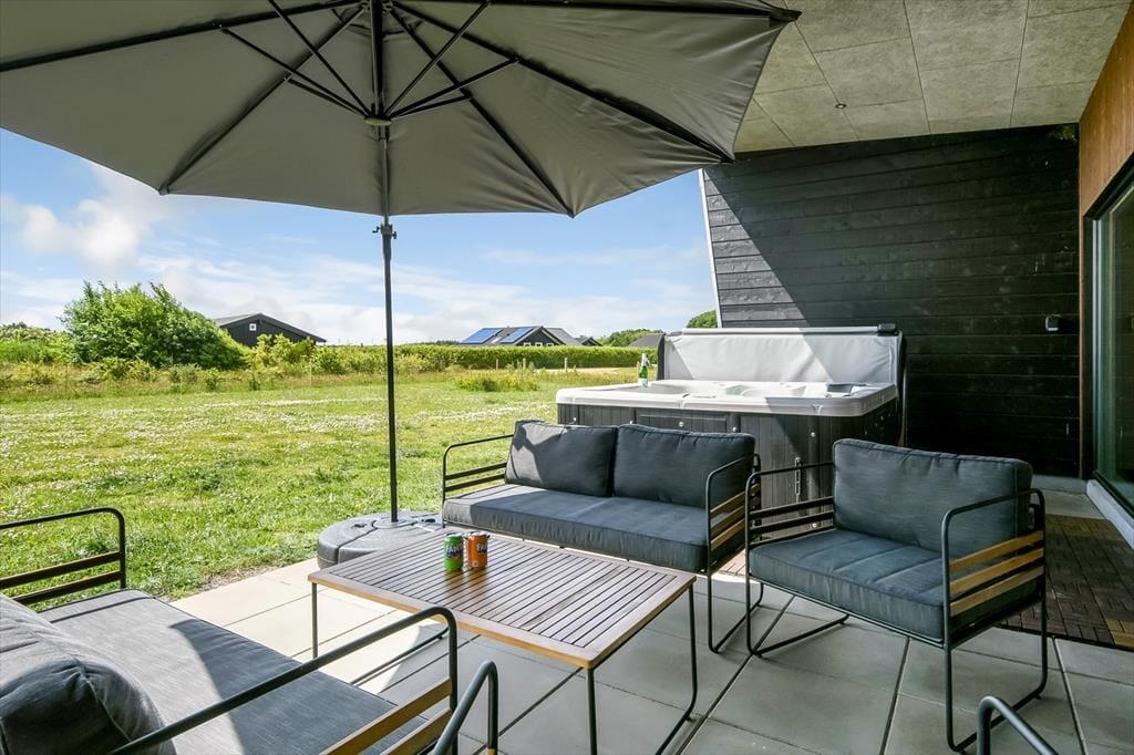 Modernes Ferienhaus in Skaven Strand mit Sauna, Kamin und eingezäuntem Garten für entspannte Urlaubstage.