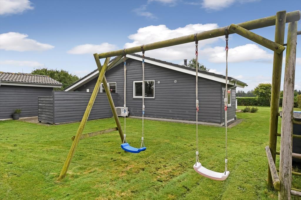 Wenn das Wetter nicht zum Kuscheln vor dem Kaminofen, sondern zum Sonnenbaden und frisch Gegrilltem einlädt, ist es eine gute Idee, sich nach draußen zu setzen – zum Beispiel auf eine der Terrassen, die das Ferienhaus umgeben. Der grüne Rasen lädt zum Spielen ein und die Schaukel mit Rutsche und Sandkasten wird die jüngsten Familienmitglieder garantiert lange beschäftigen. Eltern von Kleinkindern sowie Hundebesitzer werden es zu schätzen wissen, dass das Grundstück komplett eingezäunt ist, was es einfacher macht, alle in sicherer Umgebung zu wissen. Daher ist die Einfahrt zum Grundstück mit einem Tor versehen. Eine Ladestation an der Vorderseite des Hauses steht für dein Elektroauto bereit.