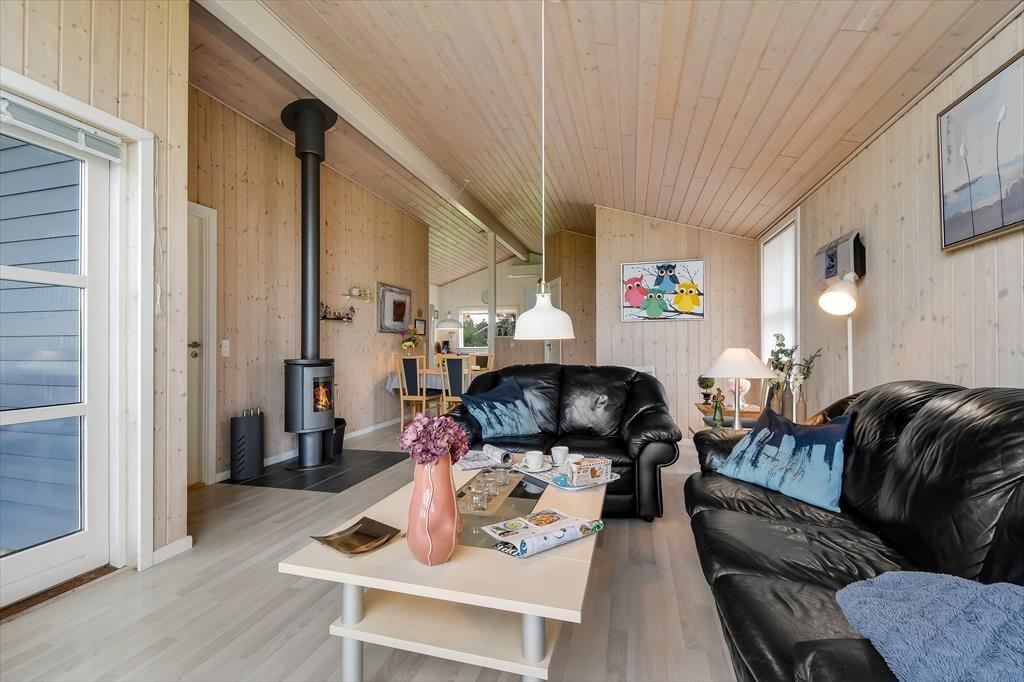 Das Ferienhaus ist ein gut ausgestattetes Holzhaus im klassischen Stil, das im Jahr 2007 gebaut und seitdem gut gepflegt wurde. Die hohen Decken sowie eine helle Holzvertäfelung im Inneren und die großen Fenster lassen viel Tageslicht herein und bieten Aussicht auf den grünen Garten und die offene Landschaft im Süden. Deiner Familie und dir stehen drei große Schlafzimmer zur Verfügung. Wenn du gerne kochst, kannst du dich auf die gut ausgestattete Küche freuen, die zum Wohnzimmer hin offen ist. Das Wohnzimmer hat eine gemütliche Sofaecke, die dazu einlädt, sich bei einem Film auf dem Flachbildfernseher völlig zu entspannen – und bevor du es dir zu bequem machst, kannst du, je nach Jahreszeit, den Kaminofen anheizen.