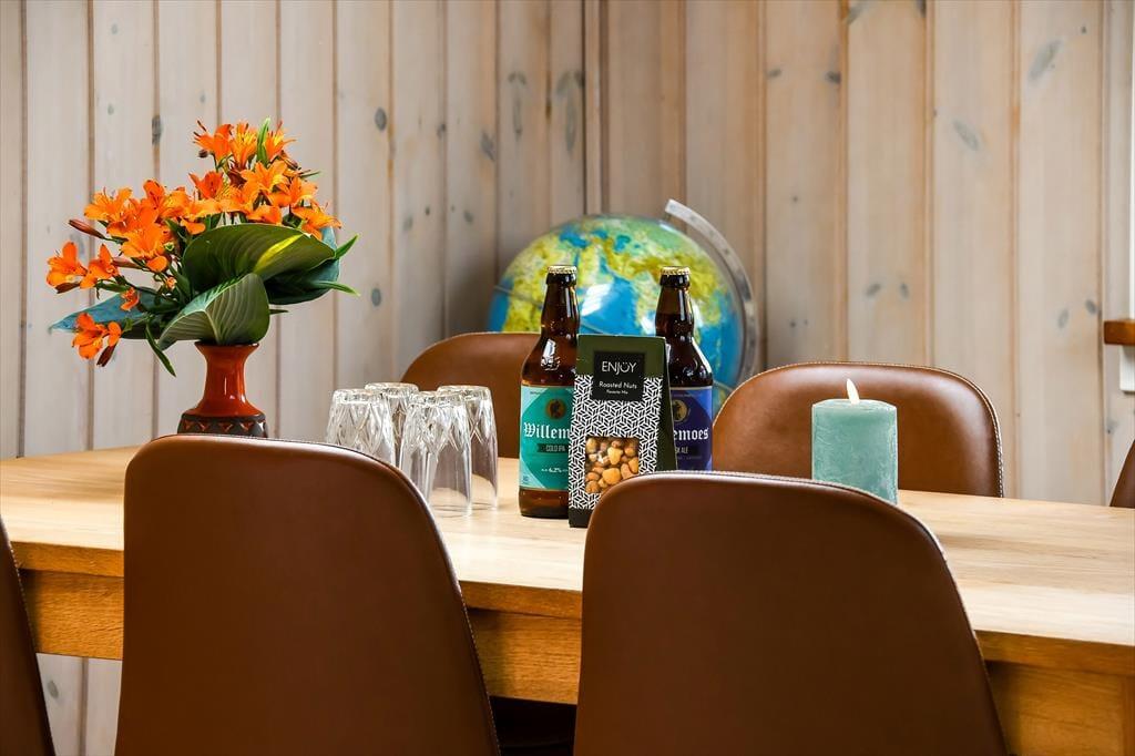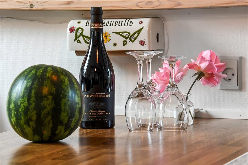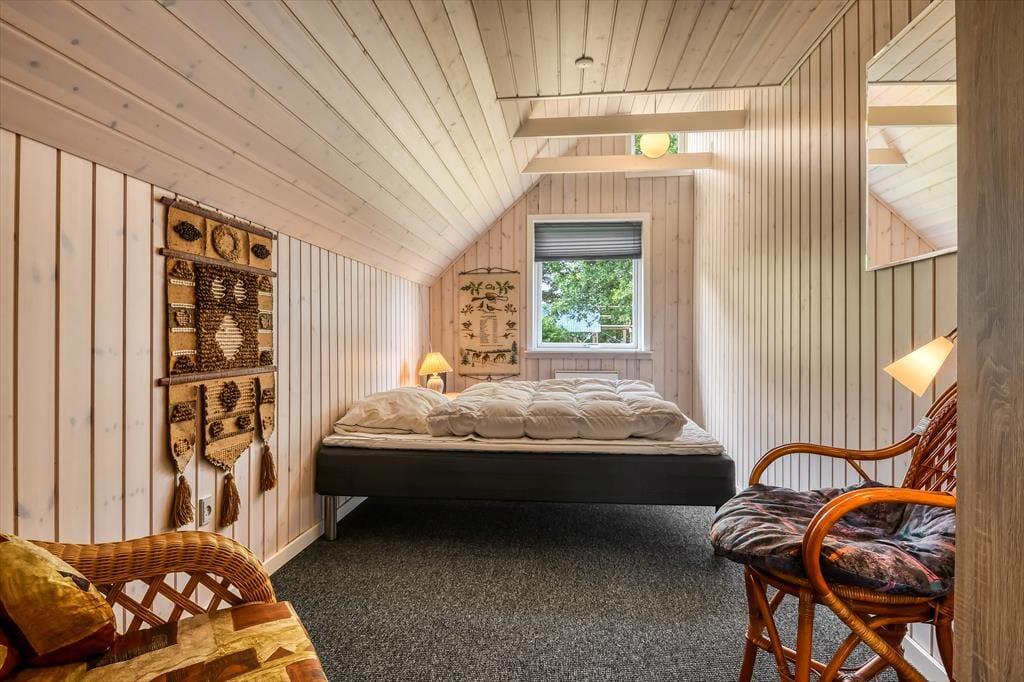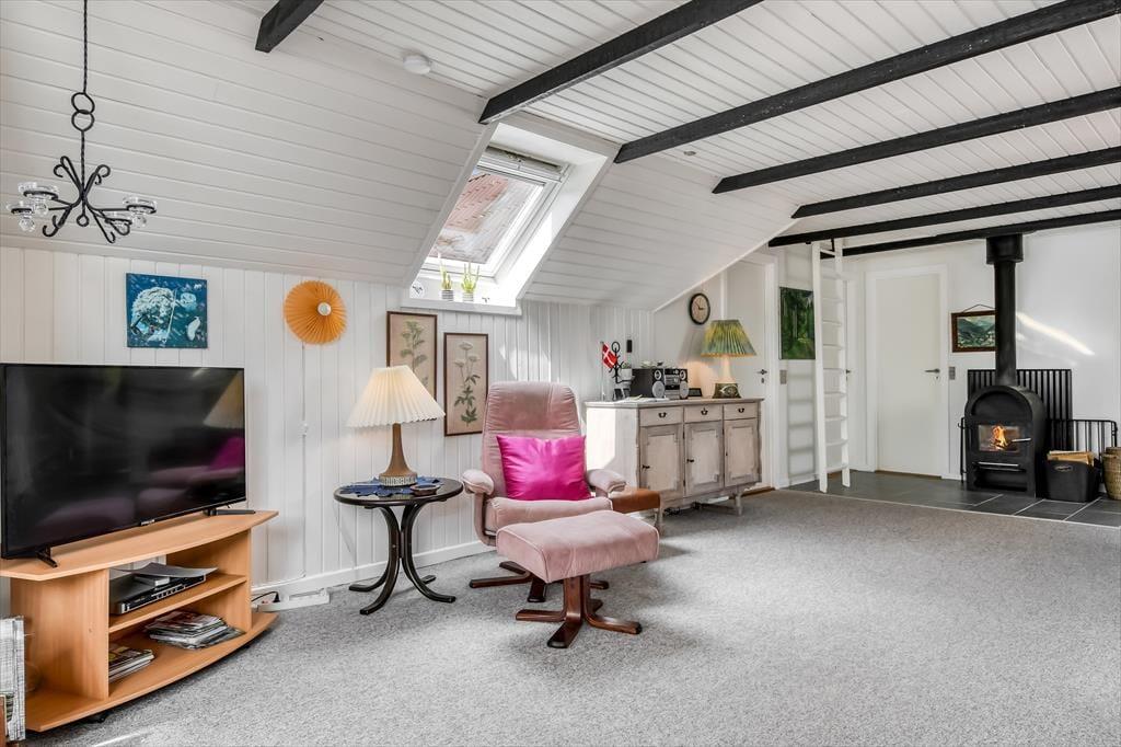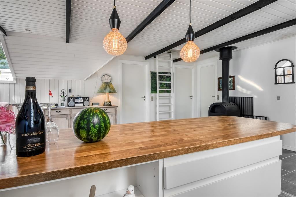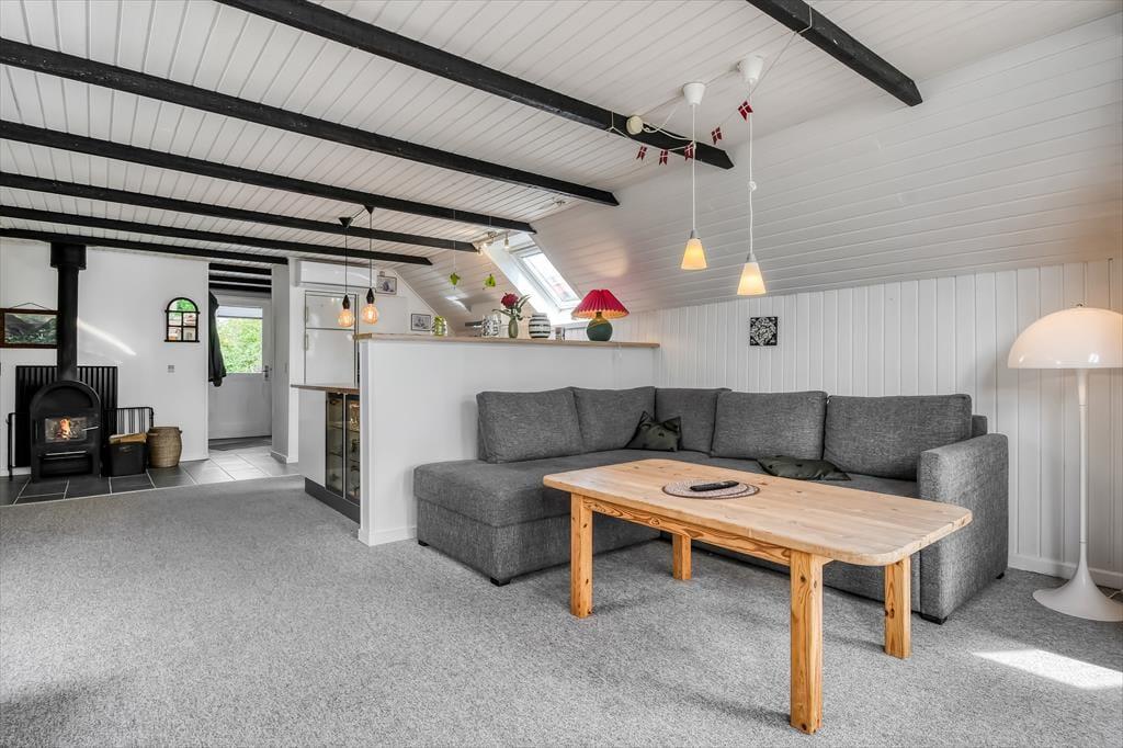 Wenn du dich mit denen, die dir besonders am Herzen liegen in aller Ruhe erholen möchtest, darfst du dich bereits jetzt auf ausgedehnte Frühstücke am Esstisch, auf vergnügte Spieleabende und auf gemütliche Stunden auf dem Sofa vor dem Fernseher freuen. In der offenen Küche bereitest du garantiert gerne die täglichen Mahlzeiten zu. Dank des guten Platzangebots kann das Kochen problemlos zum unterhaltsamen Familienprojekt werden. An kühlen Tagen und Abenden verwöhnt dich der im Wohnraum platzierte Kaminofen mit behaglicher Wärme. Falls du es gerne noch wärmer magst, wird es dich unwiderstehlich in die im Nebengebäude untergebrachte Sauna ziehen. Die beiden Schlafräume bieten Platz für vier übernachtende Personen.