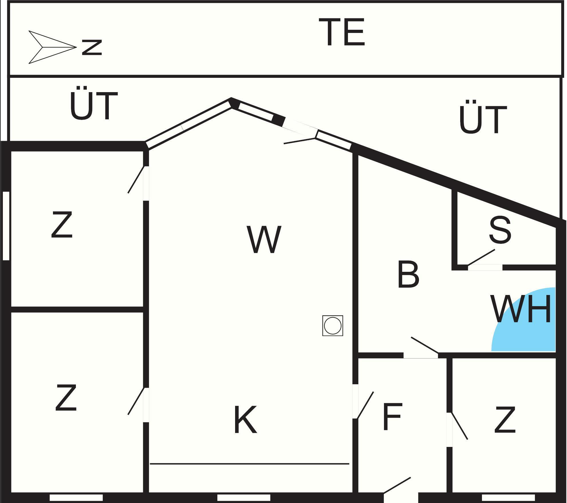Bad: WC, Waschb., Dusche, Fußbodenheiz.